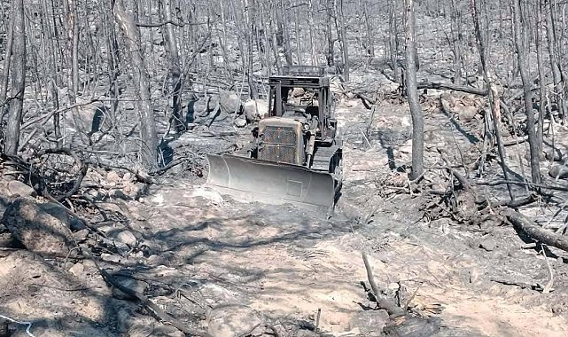 ESKİŞEHİR'in Seyitgazi ilçesinden çıkıp Afyonkarahisar'a sıçrayan 5 AKUT gönüllüsü ile 5 orman işçisinin aniden ters esen şiddetli rüzgarla birlikte alevlerin arasında kalarak şehit olduğu bölgenin fotoğraf ve görüntüleri ortaya çıktı. Görüntülerde alevlerin arasında kalan iş makinelerinin demir yığınına döndüğü görüldü.Seyitgazi ilçesi ile rüzgarın etkisiyle sıçradığı Afyonkarahisar'ın İhsaniye ilçesine bağlı Sarıcaova köyü il sınırındaki orman yangınını söndürme çalışmalarında 5 AKUT gönüllüsü ile 5 orman işçisi ters esen şiddetli rüzgarla birlikte alevlerin arasında kalarak şehit oldu. Sarıcaova köyü yakınında tepe noktalardaki ormanda 10 kişinin şehit olduğu alanın fotoğraf ve videoları ortaya çıktı. Görüntülerde alevlerin arasında kalan iş makineleri ve arazözlerin yanarak demir yığınına döndüğü, ağaçların ise siyaha büründüğü görüldü. CEP TELEFONU SİNYALLERİNDEN YERLERİ BELİRLENMİŞOrmanda şehit olan 10 kişinin bulunmasına ilişkin detaylar da ortaya çıktı. AKUT yöneticilerinin 'arkadaşlarımızdan haber alamıyoruz' başvurusu üzerine bölgede cep telefonu sinyallerinin takip edildiği, Ankara'dan gelen arama kurtarma helikopteriyle yapılan incelemede orman işçilerinin bulunduğu alanın tespit edildiği öğrenildi.