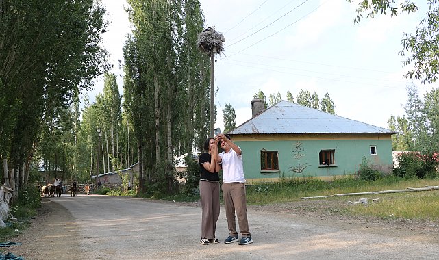 HAKKARİ'nin Yüksekova ilçesine bağlı Köprücük köyünde yaklaşık 22 yıl önce gelerek yuva yapan 2 leylek, yavruları da doğunca yaz-kış köyden ayrılmadı. Leylekler, 20 yıl boyunca caminin soba bacasına yuva yaptı. Caminin 2 yıl önce yıkılması sonrasında yuvalarını elektrik direğine taşıyan leyleklere, köylüler bugüne kadar olduğu gibi Kurban Bayramı'nda da yiyecek verip, yuva önünde fotoğraf çekti. Yüksekova'daki Nehil Sazlığı ve çevresindeki sıradağlar nedeniyle zengin bitki örtüsü ve sulak alanlara sahip Yüksekova, her yıl yüzlerce kuş türüne ev sahipliği yaparken, ilçeye 10 kilometre uzaklıktaki Köprücük köyü de leyleklerin uğrak yeri oldu. Yaklaşık 22 yıl önce köye gelip cami bacasına yuva yapan leylek çifti, yaz ve kış aylarında yuvalarından ayrılmayıp, yavrularını burada büyütünce köylüler sahip çıktı. Leyleklerin kaldığı eski cami 2 yıl önce yıkılıp yerine yeni cami yapılınca erkek, dişi ve yavru leylek, bu kez köy içindeki elektrik direğine yuva yaptı. Köydeki yaşamlarını sürdüren leyleklere, yıllardır yiyecek verip sahip çıkan köylüler, Kurban Bayramı'nda da leylekleri unutmadı. Köylüler, yiyecek verdikleri leyleklerin konakladıkları yuva önünde selfie çekti.'KÖYÜMÜZE RENK KATTILAR'Köylülerden Serdar Demir, "22 yıldır köyde bizimle birlikte yaşıyorlar. Onlar bize, biz onlara alıştık. Artık civar köylerde yaşayanlar bile köyümüze gelip leylekleri görmek istiyorlar ve hatıra fotoğrafı çekiyorlar. Leylekler köyümüzü renklendirdi. Köylüler olarak leyleklerimizi çok seviyoruz. Biz buranın havasına nasıl alışmışsak onlar da alıştı" dedi. Köylülerden Bahattin Demir ise "Köyümüze renk kattılar. Hiç tanımadığımız, bilmediğimiz insanlar gelip leyleklere bakıyorlar. Daha önce caminin bacasındaydı. Cami yıkıldıktan sonra da köyden göç edeceğini düşündük. Ancak köyü seven bu leylekler bu kez de yuvalarını elektrik direğine taşıdılar. Eskinden sadece bir tane vardı sonra aile oldular" diye konuştu.
