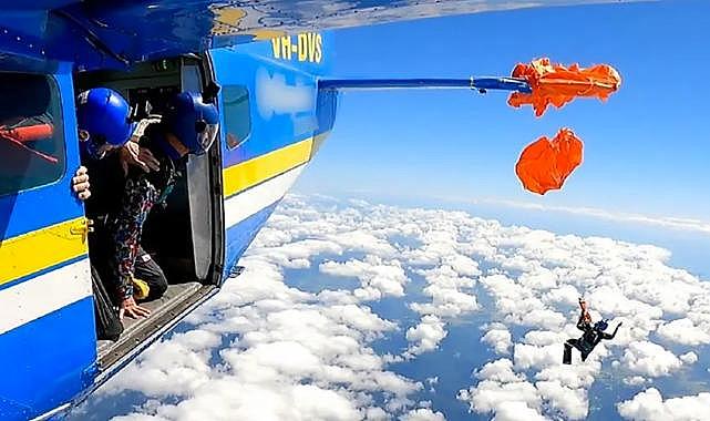 Avustralya yetkilileri tarafından yayımlanan görüntüler, bir paraşütçünün paraşütünün uçağın kuyruğuna takılması sonucu binlerce metre yüksekte asılı kaldığı anı gösterdi.Paraşütçü, eylül ayında Cairns’in güneyinde bir gösteri sırasında meydana gelen ve ancak ulaştırma güvenliği kuruluşunun yürüttüğü soruşturmanın ardından ortaya çıkan olaydan sağ kurtuldu.4 bin 600 metre yükseklikte 16 kişilik bir paraşütçü formasyonu planlanmıştı ve bu uçuş bir paraşütçü kamera operatörü tarafından kaydediliyordu. Ancak ilk katılımcının uçak kapısına ulaşmasının ardından saniyeler içinde kaos çıktı.