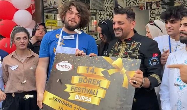 BURSA'da, '14'üncü Börek Festivali'nde 5 dakika içinde 11 metre uzunluğunda börek yiyen Ali Kılıç, 1'inci olarak 10 gram altının sahibi oldu.Kentte bu yıl 14'ncüsü düzenlenen 'Börek Festivali', 15 Temmuz Demokrasi Meydanı'nda yapıldı. Toplam 40 adayın katıldığı yarışmada 5 dakikada 11 metre börek yiyen Ali Kılıç, 1'inci olup 10 gram altın kazandı. Aynı sürede 10,5 metre börek yiyen Fatma Arslan 5 bin TL ve 9 metre börek yiyen Uğur Dündar ise 2 bin 500 TL ödülün sahibi oldu. Festivali geleneksel hale getirdiklerini söyleyen Hasan Acar, "Düzenlediğimiz etkinlikte, yarışmayı izleyenlere de 900 kilo börek ikram ettik" diye konuştu.