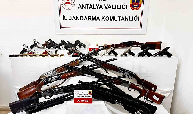 Antalya'nın Alanya ilçesinde jandarma ekipleri tarafından 11 ayrı adrese eş zamanlı gerçekleşen operasyonda çok sayıda tabanca ve tüfek ele geçirildi.
