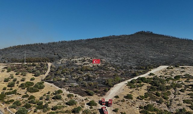 İZMİR'in Aliağa ilçesinde, sanayi bölgesinin yakında çıkıp ormana sıçrayan ekiplerin müdahalesiyle 11 saatte kontrol altına alınan yangında zarar gören alanlar dronla görüntülendi. Çöpleri temizlemek amacıyla yaktığı ateşle yangına sebebiyet verdiği belirlenip, gözaltına alınan M.E.'nin ise jandarmadaki işlemlerinin sürdüğü bildirildi. İzmir birkaç gündür yangınlarla mücadele ediliyor. Çarşamba günü Aliağa'nın Horozgediği Mahallesi yakınlarında başlayan yangın, rüzgarın etkisiyle Foça'nın Ilıpınar Mahallesi'ne ulaştı. Aynı gün Torbalı ilçesinde de yangın çıktı. Torbalı'daki yangın birkaç saat sonra kontrol altına alındı. Aliağa'dan Foça ilçesine ulaşan yangın ise yoğun müdahaleler sonucu dün, 21,5 saat sonra kontrol altına alınabildi. 150 hektarlık alanda etkili olan yangında kızılçam ağaçlarıyla kaplı ormanın yanı sıra zeytin ağaçlarıyla kaplı tarım arazileri de zarar gördü.Dün saat 19.00 sıralarında, bu defa Aliağa'nın Bozköy Mahallesi'nin sanayi bölgesinde yangın çıktı. Alevler kısa sürede büyüyerek ormana sıçradı. 112 Acil Çağrı Merkezi'ne yapılan ihbarın ardından yangına 5 dakika sonra müdahale edildi. Bölgeye İzmir Orman Bölge Müdürlüğü'ne ait 6 uçak, 5 helikopter, 25 arazöz, 9 su ikmal, 5 dozer ve çok sayıda personel sevk edildi. Bunun yanında İzmir İl Jandarma Komutanlığı ekipleri de çalışmalara destek verdi. Alevlere gün boyu havadan ve karadan müdahale edildi. Havanın kararmasıyla hava ekiplerinin müdahalesine ara verildi. Günün ilk ışıklarıyla hava müdahalesi yeniden başladı. 11 saatlik müdahale sonucu bugün saat 06.00 itibarı ile yangın kontrol altına alındı. Alevlerin Bozköy Mahallesi'ndeki 10'un üzerinde eve de zarar verdiği yangına, çöpleri temizlemek amacıyla yaktığı ateş neden olduğu belirlenen M.E. gözaltına alındı. Soğutma çalışmaları sürerken, yangında 150 hektar alanın yangından zarar gördüğü; bunun yarısının tarım alanı diğer yarısını ise kızılçam ağaçları olduğu belirtildi. Orman Genel Müdürlüğü de yangının kontrol altına alındığını duyurdu. YILLARIMIN BİRİKİMİ YANDIYangında Bozköy Mahallesi'ndeki evi yanan Fikri Altınkaya (68) yaşadığı korku dolu anları anlatıp, "Yangına eşim Pelin Altınkaya (65) ile evde yakalandık. Birlikte otururken peş peşe 2 patlama oldu. Bu sırada arkadaşım telefon etti. 'Terk et orayı, yanıyorsun' dedi. Bu sırada askerler geldi. Dışarı çıkmamızdan bir süre sonra ise alevler eve kadar ulaştı. Karşıdan film seyreder gibi yangını izledik. Evim tamamen yandı. Yılların birikimi yandı. Yılların emeği boşa gitti. Bu saatten sonra bu evin sıvasını bile yapamam" dedi. Bu arada yanan alanlar dronla görüntülendi.