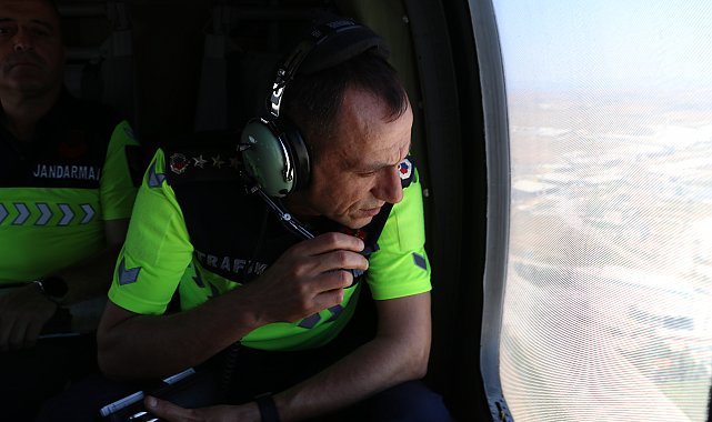 ANKARA'da Jandarma Genel Komutanlığı tarafından helikopter ve cayrokopterlerle havadan trafik denetimi gerçekleştirildi.Jandarma Genel Komutanlığı'na bağlı Trafik Daire Başkanlığı ile Havacılık Komutanlığı tarafından, Kurban Bayramı arifesinde havadan trafik denetimi gerçekleştirildi. Helikopter ve cayrokopterlerle şehrin üzerinde devriye yapan ekipler, başta ağır tonajlı araçlar olmak üzere, hatalı park eden, şerit izleme ve değiştirme kurallarına uymayan, emniyet kemeri kullanmayan ve cep telefonu ile konuşan araç sürücülerini tespit edildi. Yerdeki ekiplere havadan helikopterle destek sağlanırken, tespit edilen olumsuz durumlara anında müdahale edildi. Denetimlerin bayram tatili süresince devam edeceği bildirildi.Jandarma Genel Komutanlığı tarafından Kurban Bayramı tatili boyunca Türkiye genelinde 37 ilde helikopter ve cayrokopterlerle ile 294 saat, 81 ilde ise dron ile 2 bin 964 saat trafik denetimi gerçekleştirecek. Ayrıca bayram tatili boyunca gündüz 962, gece ise 604 radar ile hız denetimi yapılacak. Bununla birlikte 177 sivil personel ile otobüs denetimi gerçekleştirilecek.