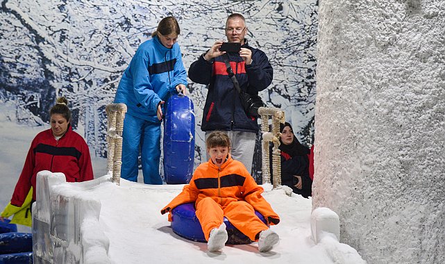 HİSSEDİLEN sıcaklığın 40 dereceleri bulduğu Antalya'da tatilciler, eksi 2 derecelik 'kar odası'nda serinliyor.Antalya'da hava sıcaklığı ve nem oranı mevsim normallerinin üzerine çıktı. Hissedilen sıcaklığın 40 dereceyi bulduğu kentte deniz suyu sıcaklığı 31 derece ölçülürken, nem oranı zaman zaman yüzde 80'e ulaştı. Sıcak hava dalgasının etkisini artırdığı Antalya'da, sahillerde serinlemeye çalışan tatilciler yüksek deniz suyu sıcaklığı nedeniyle bekledikleri ferahlığı bulamayınca 'kar odası'nı tercih etmeye başladı. İçerideki hava sıcaklığı eksi 2 derece olan odada, yapay kar ve kış temalı ambiyans oluşturuluyor. Dışarısıyla 42 derecelik sıcaklık farkı bulunan kar odası, ziyaretçilere nefes aldırıyor. Özellikle çocuklu ailelerin ilgi gösterdiği kar odası, dışarıdaki kavurucu sıcaklıktan kaçış noktası haline geldi. 'BİR NEBZE DE OLSA SERİNLEDİ'Adana'dan Antalya'ya geldiklerini belirten Şevin Ergül Erol, "Ben sıcak havayı seviyorum, aksine soğuk sevmiyorum. Ama çocuklarımız buraya gelmeyi çok istedi. Bizler Adana'dan dolayı sıcağa çok alışkınız. Kar odasında bir nebze de olsa serinledik" dedi. Ailesiyle kar odasına gelen Fatma Ülkü Aslan, "Antalya çok sıcak. Dışarıda lavın içindeymişiz gibi ama burada hava çok serin. Montla geziyoruz ve sanki kış mevsimindeyiz gibi. Denize girmekten daha ferah hissettiriyor kar odası" dedi. Kar odasında eğlenceli vakit geçirdiğini belirten Yağmur Aslan ise kendisini kayak merkezinde gibi hissettiğini, sıcak havadan kar odasında korunduklarını kaydetti.