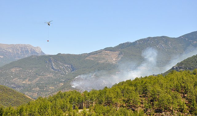 ANTALYA'nın Alanya ve Gazipaşa ilçelerinde dün çıkan orman yangınlarına müdahale sürüyor. Gece boyu kara ekiplerinin söndürmek için yoğun çaba harcadığı yangınlara günün ilk ışıklarıyla birlikte hava müdahalesi yeniden başladı. Hava sıcaklığının 46,1 dereceye ulaşmasıyla 95 yılın temmuz ayı sıcaklık rekoru kırılan Antalya'da, dün art arda çıkan 6 orman yangınından 4'ü söndürüldü. Gazipaşa ve Alanya'da devam eden yangınlara müdahale ise sürüyor. Gazipaşa'ya bağlı Doğanca Mahallesi'nde çıkan ve rüzgarın da etkisiyle hızla yayılarak Çile ve Adanda mahallelerine doğru ilerleyen yangına dün gün batımına kadar havadan müdahaleye devam edildi. Gece boyu da kara ekipleri alevlerle mücadele etti. Bölgede orman yangınından etkilenme riski oluşan 22 ev boşaltılırken, İHH Arama Kurtarma ekiplerinin desteğiyle 40 vatandaş tahliye edildi, hayvanlar da bölgeden uzaklaştırıldı. 223 personelin katılımıyla gece boyu kritik bölgelere müdahale yapıldı. Dün havanın kararmasıyla ara verilen havadan müdahale, rüzgarın etkisinin yitirdiği bölgede sabahın ilk ışıklarıyla yeniden başladı. GECE BOYU YOĞUN MÜCADELEAlanya ilçe merkezine yaklaşık 1,5 saat uzaklıktaki Söğüt Yaylası'nda dün öğle saatlerinde çıkan yangına da ekipler gece boyu müdahaleyi sürdürdü. Yürütülen yoğun çalışmalar sonucu alevlerin etrafı büyük ölçüde çevrildi. Bölgenin sarp ve dağlık yapısı ekiplerin müdahalesini güçleştirdi. 50'ye yakın araç ve çok sayıda personelle müdahale edilen yangın söndürme çalışmalarına vatandaşlar da kendi imkanlarıyla destek vermeye çalıştı. Sabah saatlerinden itibaren bu bölgedeki yangına da havadan müdahaleye yeniden başlandı. ALANYA'DAKİ 2'NCİ YANGIN SÖNDÜRÜLDÜAlanya'da gece 2'nci bir yangın daha çıktı. İlçeye bağlı Okurcalar Mahallesi Karaburun mevkiinde saat 23.00 sıralarında çıkan yangının fark edilmesi üzerine bölgeye Alanya Orman İşletme Müdürlüğü'ne bağlı 7 arazöz, Antalya Büyükşehir Belediyesi Alanya İtfaiye Müdürlüğü'ne ait 5 itfaiye aracı, Alanya Belediyesi'ne ait 3 su tankeri, 4 kepçe ile jandarma asayiş timinden 6 ekip sevk edildi. Ekiplerin yangın söndürme çalışmalarına çevredeki vatandaşlar da destek verdi. Yoğun çaba sonucu yangın kısa sürede söndürüldü. Yangında yaklaşık 3 hektarın zarar gördüğü belirlendi.
