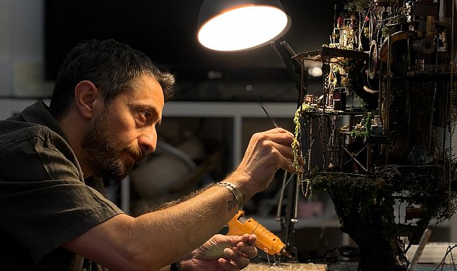 ANKARA'da diorama (3 boyutlu modelleme) sanatçısı Melih Şentürk (50), evine kurduğu atölyede atık ve hurda malzemelerle gerçek veya kurgu bir olayın, anın veya hikayenin, ışık oyunlarının da desteğiyle üç boyutlu modellemesini yapıyor.Kentte 13 yaşından itibaren hurda ve atık malzemeleri sanat eserine dönüştüren diorama sanatçısı Melih Şentürk; kil, ahşap, karton, eski oyuncak, düğmeler, atık kablolar ve hurda parçaları kullanarak gerçek veya kurgu bir olayın, anın veya hikayenin ışık oyunlarının da yardımıyla üç boyutlu modellemesini yapıyor. İlk eserini, babasının aldığı müzik setini parçalarına ayırıp vinç haline getirerek yapan Şentürk, çalışmalarında ağırlıklı olarak atık, hurda ve doğal malzemeler kullanıyor, bu sayede de hem sanata hem de geri dönüşüme katkı sağlamayı hedefliyor. Eserlerini 3-6 ay aralığında tamamlayan Şentürk, çalışmalarını çeşitli fuarlarda ve kültür merkezlerinde sergiliyor. Şentürk, çocukluğundan itibaren minyatür objelere ilgi duyduğunu belirterek, "Küçük parçalarla çalışmak beni çok heyecanlandırıyordu. 7 yıl önce diorama atölyemi açarak tüm zamanımı buraya vermeye başladım. Birçok kırtasiyede diorama malzemeleri temin edebilirsiniz ancak ben çalışmalarımı çevremden topladığım malzemelerle yapıyorum" dedi.'TÜRKİYE'DE MAKET OLARAK BİLİNİYOR'Dioramanın 1800'lü yıllara dayanan bir sanat olduğunu aktaran Şentürk, "Kıymetli bir sanat. Aslında bir resim yapıyorsunuz. Bir tablo yapıyorsunuz. Bunu 3 boyutlu halde yapıyorsunuz. Maalesef Türkiye'de çok bilinmiyor. Maket olarak biliniyor. Maketle hiçbir ilgisi yok. Maketçilik de müthiş bir sanat, Türkiye'de müthiş maket ustaları var fakat maket aldığınız bir parçayı, aldığınız hazır bir kiti birleştirip üretme sanatı. Bundan defalarca kez yapabilirsiniz. Ama dioramanın Türkiye'de bilinmemesini çok da yadırgamıyoruz. Uzak Doğu'da daha çok merak uyandıran bir sanat. Orada malzemeleri alabileceğiniz yerler de var. Burada hala maket olarak biliniyor. Hatta sergi açtığınız zaman gelen insanların birçoğu diorama ismini ilk defa duymuş kişiler oluyor. Ben bunun için elimden geleni yapacağım. Özellikle distopik diorama üzerine bu sanatı tanıtmaya çalışacağım" ifadelerini kullandı.'SATIN ALAMASINLAR DİYE YÜKSEK FİYAT SÖYLÜYORUM'Doğadaki kaynakların yok edilmesine dikkat çekmek için distopik tarzda eserler yaptığını ifade eden Şentürk, "Tanıdıklarıma 'Atmak üzere olduğunuz oyuncaklar, malzemeler, eski atık parçaları, tahtalar, aklınıza ne geliyorsa bana gönderin' diye haber verdim. Bana koliyle parçalar gelmeye başladı. 7 sene önce distopik tarzda başladığım esere ilk koyduğum parça tamamen atık bir parçaydı. Çöpe giden oyuncaklar, eski tahta parçaları, elektronik parçalar, bilgisayar içindeki parçaları kullanıyorum. Eserlerimi satın almak isteyenler oluyor fakat satın alamasınlar diye bilerek yüksek fiyat söylüyorum. Hareketli olan birkaç çalışmam var. Sergilediğim zaman, hareketli olan çalışmalarım çok daha fazla ilgi çekiyor. İnsanlar, onun başında durup fotoğrafını, videosunu çekiyorlar ve uzun uzun izliyorlar" dedi.'GELECEKTEKİ FELAKET SENARYOLARINI CANLANDIRIYORUM'Eserlerinde, doğal kaynakların yok edilmesinden sonraki dünyaya ait mesajlar yer aldığını söyleyen Şentürk, "Eserlerimdeki sahneler, gelecekteki felaket senaryolarını canlandırıyor; insanların sadece barınmak için yaşadıkları hayatta, etraftan topladıkları hurdalarla yaptıkları barınakları anlatıyor. Hastalıkların hakim olduğu, dünyanın sonu veya dünyanın sonuna yakın olduğu bir ortamı anlatıyor. Eserlerimde insanların sürekli enerji üretmeye yönelik kullandığı hayatta kalabilmek için kullanılan malzemeler, su depoları, elektrik santralleri, rüzgar enerjileri ve kablolar gibi şeylere çok fazla denk gelebilirsiniz. Bu atıkları, bu şekilde atmaya yani bu şekilde tüketmeye ve sömürmeye devam edersek ileride bu atıklardan yapacağımız barınaklarda yaşamak zorunda kalacağız" diye konuştu.'BU SANAT SABIRLA TERBİYE EDİYOR'Bu zamana kadar 100'e yakın öğrenciye özel ders verdiğini söyleyen Şentürk, diorama sayesinde özellikle teknoloji bağımlısı gençlerin odaklanma sorunlarında azalma fark ettiğini dile getirdi. Şentürk ayrıca, öğrencilerinin bu sanatla uğraşırken dikkatlerini toplayarak anda kaldıklarını ifade ederek, "Size en büyük kazancı müthiş bir sabır yeteneği oluyor. Bu sanat sabırla terbiye ediyor. Çok iyi odaklanabiliyorsunuz. Sohbet ederken karşınızdaki insanın gözüne bakarak dakikalarca konuşabiliyorsunuz. Beyin de inanılmaz faaliyete geçiyor. Problem çözme yeteneğiniz artabiliyor" dedi. Şentürk, ilerleyen günlerde farklı projelere imza atacağını kaydederek, "İstanbul'da ve Ankara'da şehri simgeleyen bazı yapılar var. Ankara için Atakule'nin distopik dioramasını yapmayı çok istiyorum. O özel bir çalışma olacak. Aynı şekilde İstanbul'daki Galata Kulesi'ni yapmayı çok istiyorum" diye konuştu.