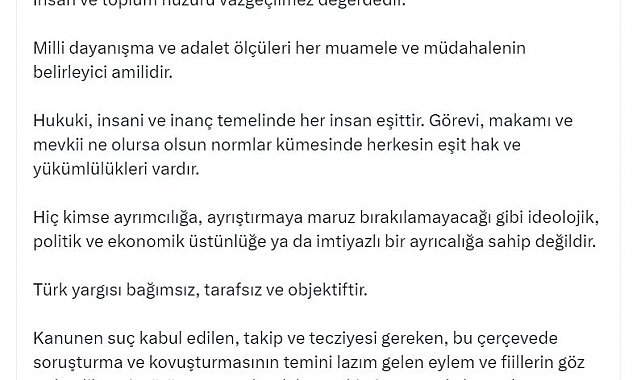 MHP Genel Başkanı Devlet Bahçeli, "İstanbul Büyükşehir Belediye Başkanı hakkında yapılan adli tasarrufu sabır ve sağduyu ile karşılamak, hukukun vereceği her türlü karara saygıyla yaklaşmak ortak sorumluluk olmalıdır. Hukuki bir tedbiri 'darbe' diyerek karalamak, hak arayışını sokağa taşırmaya hazırlık yapmak cinnet geçirmiş, akıl ve ahlak seviyesini kaybetmiş bir siyasi yozluktur" dedi.MHP Genel Başkanı Devlet Bahçeli, İstanbul Büyükşehir Belediye Başkanı Ekrem İmamoğlu hakkında gözaltı kararı verilmesiyle ilgili sosyal medya hesabından açıklama yaptı. Bahçeli, Türkiye Cumhuriyeti'nin milli, üniter, demokratik, sosyal nitelikli bir hukuk devleti olduğunu belirterek, "İnsan ve toplum huzuru vazgeçilmez değerdedir. Milli dayanışma ve adalet ölçüleri her muamele ve müdahalenin belirleyici amilidir. Hukuki, insani ve inanç temelinde her insan eşittir. Görevi, makamı ve mevkii ne olursa olsun normlar kümesinde herkesin eşit hak ve yükümlülükleri vardır. Hiç kimse ayrımcılığa, ayrıştırmaya maruz bırakılamayacağı gibi ideolojik, politik ve ekonomik üstünlüğe ya da imtiyazlı bir ayrıcalığa sahip değildir" dedi.'ŞİDDET ORTAMINA DAVETİYEDİR'Türk yargısının bağımsız, tarafsız ve objektif olduğunu söyleyen Bahçeli, "Kanunen suç kabul edilen, takip ve tecziyesi gereken, bu çerçevede soruşturma ve kovuşturmasının temini lazım gelen eylem ve fiillerin göz ardı edilmesi, sürüncemeye bırakılması, kimi zaman da hasıraltına itilmesi maşeri vicdanı derinden yaralayacak, devlet umurunu ve milletin hukuksal güvenliğini zedeleyecektir. Adalet ve hukuka karşı çıkılması, değilse bile tartışmaya açılması asayişsizlik ve şiddet ortamına davetiyedir. İstanbul Büyükşehir Belediye Başkanı hakkında yapılan adli tasarrufu sabır ve sağduyu ile karşılamak, hukukun vereceği her türlü karara saygıyla yaklaşmak, ortak sorumluluk olmalıdır. Hukuki bir tedbiri 'darbe' diyerek karalamak, hak arayışını sokağa taşırmaya hazırlık yapmak cinnet geçirmiş, akıl ve ahlak seviyesini kaybetmiş bir siyasi yozluktur. Hiç kimse dokunulamaz, ulaşılamaz, erişilemez ve hesap sorulamaz değildir. Hukuk ile demokrasiyi, adalet ile sandığı, milli iradeyle mülkün temelini cepheleştirmek, hatta çatıştırmak için beşinci kol faaliyetine tevessül etmek yaygın şiddet olaylarına, yoğun istikrarsızlık tablosuna ve yıkıcı krizlere çağrıdır" ifadelerini kullandı.'DİKKAT GÖSTERMEMİZ TARİHİ ÖNEMDE'Türk yargısına güveninin tam olduğunu söyleyen Bahçeli, mahkeme marifetince suç sabit görülesiye kadar masumiyetin esas olduğunu belirterek, şunları kaydetti:"Türkiye'nin şiddetsiz, şikayetsiz, terörsüz, şüphesiz, refah ve huzur dolu bir yüzyıla adım adım ilerlediği şu günlerde içimizi karıştırmaya, düzen ve dirliğimizi bozmaya teşebbüs eden iç ve dış odaklara azami dikkat göstermemiz, devamlı tetikte beklememiz tarihi önemdedir. Şiddet, insan onurunun hiçe sayılması, insanlık değerlerinin ayaklar altına alınmasıdır. Terör de sistematik bir şiddettir. Terörsüz Türkiye aynı zamanda şiddetsiz bir Türkiye'dir. Hem bireysel hem de toplumsal düzeyde şiddetin önlenmesi öteden beri hassasiyet gösterdiğimiz, duyarlılık sergilediğimiz sıcak konu başlığıdır. Milliyetçi Hareket Partisi'nin Araştırma-Strateji Geliştirmeden Sorumlu Genel Başkan Yardımcımıza vermiş olduğum talimat kapsamında nadide bir çalışma çok şükür muhtevalı bir eser mahiyetinde ortaya çıkmıştır. 'Bireysel ve Toplumsal Şiddetle Mücadele' çalışmamızın meydana gelmesinde eşsiz katkıları ve emekleri bulunan, zamanlarını ayırarak teşkil edilen komisyonumuza canlılık kazandıran muhterem hocalarımıza, değerli uzmanlarımıza ve fikir insanlarımıza, ayrıca böylesi mühim bir çalışmanın gerçekleşmesini koordine eden Araştırma-Strateji Geliştirmeden Sorumlu Genel Başkan Yardımcımıza teşekkür ediyor, hepsini birden gönülden kutluyorum."