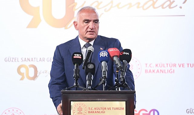 KÜLTÜR ve Turizm Bakanı Mehmet Nuri Ersoy, Güzel Sanatlar Genel Müdürlüğü'nün kuruluş yıl dönümü dolayısıyla düzenlenen törende, "Cumhuriyetimizin 2'nci yüzyılına adım atarken, kültür ve sanatla daha güçlü bir Türkiye hedefi doğrultusunda sizlerle birlikte çalışmaya devam edeceğiz" dedi.Kültür ve Turizm Bakanlığı Güzel Sanatlar Genel Müdürlüğü'nün 90'ıncı kuruluş yıl dönümü nedeniyle Ankara Resim Heykel Müzesi'nde tören düzenlendi. Törene, Kültür ve Turizm Bakanı Mehmet Nuri Ersoy, Güzel Sanatlar Genel Müdürü Ömer Faruk Belviranlı ve davetliler katıldı. Burada konuşan Bakan Ersoy, Türkiye'nin kültür ve sanat alt yapısının güçlü ve köklü bir yapıya kavuşturulması ihtiyacı sonucunda 10 Haziran 1935 tarihinde Güzel Sanatlar Genel Müdürlüğü'nün kurulduğunu hatırlattı. 'HEDEFİMİZ, BİNALARIN KÜLTÜR SANATLA DOLMASI'Bakan Ersoy, görevine başladıktan sonra Cumhurbaşkanı Recep Tayyip Erdoğan'ın Türkiye adına kültür sanat alanındaki projelerinin hemen tamamlanması yönünde talimat verdiğini belirterek, "Ben ve ekip arkadaşlarım da Sayın Cumhurbaşkanımıza verdiğimiz sözü yerine getirerek peş peşe Atatürk Kültür Merkezi, Ankara Resim ve Heykel Müzesi, Cumhurbaşkanlığı Senfoni Orkestrası Ada Ankara Yerleşkesi ve Tarihi Binası Restorasyonu, İzmir Kültür Sanat Fabrikası ve Rami Kütüphanesi gibi dünya ölçeğinde kültür-sanat merkezlerinin açılışlarını gerçekleştirdik. Tüm bu prestijli mekanları hayata geçirirken bu binaların kültür ve sanatla dolu dolu olması en önemli hedefimizdi" diye konuştu.Güzel Sanatlar Genel Müdürlüğü'nün 90'ıncı kuruluş yılını yürekten kutlayarak, sanatla dolu nice yıllar dileyen Ersoy, "Cumhuriyetimizin 2'nci yüzyılına adım atarken, kültür ve sanatla daha güçlü bir Türkiye hedefi doğrultusunda sizlerle birlikte çalışmaya devam edeceğiz" ifadelerini kullandı.Güzel Sanatlar Genel Müdürü Ömer Faruk Belviranlı ise, kurumun köklü tarihine dikkat çekerek, "90'ıncı yılımızı, birimlerimizin bulunduğu illerde başta Ankara ve İstanbul olmak üzere eylül ayındaki sezon açılışından başlayarak çeşitli etkinlikler, sahne gösterileri ve konserlerle taçlandıracağımızı buradan duyurmak istiyorum" dedi.