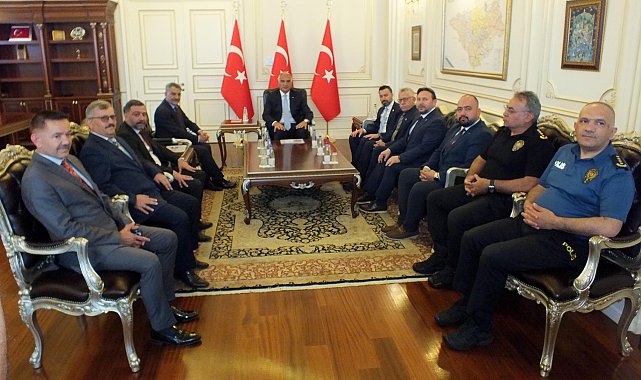 KÜLTÜR ve Turizm Bakanı Mehmet Nuri Ersoy, Yozgat Valisi Mehmet Ali Özkan'ı ziyaret etti. İl, ilçe ve belde belediye başkanlarıyla toplantı yaptı. Kültür ve Turizm Bakanı Mehmet Nuri Ersoy, Yozgat Valiliği'ni ziyaret etti. Vali Mehmet Ali Özkan ve protokol üyeleri tarafından karşılanan Ersoy, Valilik Şeref Defterini imzaladı. Bakan Ersoy daha sonra Valilik Toplantı Salonu'na geçerek Vali Mehmet Ali Özkan, AK Parti Yozgat Milletvekili Süleyman Şahan, Yozgat Belediye Başkanı Kazım Arslan, ilçe ve belde belediye başkanları ile basına kapalı toplantı gerçekleştirdi. Toplantı sonrası valilik önünde hatıra fotoğrafı çektiren Bakan Ersoy, Kayseri'deki programına katılmak üzere Yozgat'tan ayrıldı.
