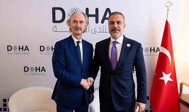 Dışişleri Bakanı Hakan Fidan, Katar temasları çerçevesinde Birleşmiş Milletler (BM) Genel Sekreteri Antonio Guterres'in Suriye Özel Temsilcisi Geir Pedersen ile bir araya geldi.Dışişleri Bakanı Hakan Fidan, Katar'da temaslarını sürdürüyor. Fidan, 22. Doha Forumu'na katılmak üzere geldiği başkent Doha'da Birleşmiş Milletler (BM) Genel Sekreteri Antonio Guterres'in Suriye Özel Temsilcisi Geir Pedersen ile görüştü.Fidan bugün erken saatlerde İran Dışişleri Bakanı Abbas Arakçi, Irak Dışişleri Bakanı Fuad Hüseyin, Mali Dışişleri ve Uluslararası İşbirliği Bakanı Abdoulaye Diop ile bir araya gelmişti. Fidan, Rusya Dışişleri Bakanı Sergey Lavrov ve İranlı mevkidaşı Arakçi ile birlikte "Astana" formatında düzenlenen Suriye konulu toplantıya katılmıştı.