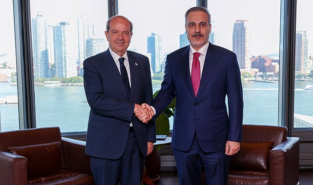 DIŞİŞLERİ Bakanı Hakan Fidan, Türkevi'nde Kuzey Kıbrıs Türkiye Cumhuriyeti (KKTC) Cumhurbaşkanı Ersin Tatar ile bir araya geldi.Dışişleri Bakanı Hakan Fidan, gayriresmi Kıbrıs toplantısı için bulunduğu New York'ta, KKTC Cumhurbaşkanı Ersin Tatar ile Türkevi'nde bir araya geldi. Görüşme basına kapalı gerçekleşti.