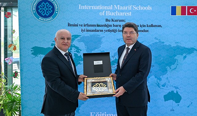 - ADALET Bakanı Yılmaz Tunç, Romanya'daki temasları kapsamında Bükreş Uluslararası Maarif Okulu'nu ziyaret etti.Adalet Bakanı Yılmaz Tunç, resmi temaslarda bulunmak üzere gittiği Romanya'da, Bükreş Uluslararası Maarif Okulu'nu ziyaret etti. Ziyarete ilişkin sosyal medya hesabından paylaşımda bulunan Tunç, "Bükreş Uluslararası Maarif Okulunu ziyaret ederek öğrencilerimiz, öğretmenlerimiz ve okul idarecilerimizle bir araya geldik. 23 ülkeden 500 öğrencinin eğitim gördüğü Türkiye Maarif Vakfımızın eğitim yuvasında, her kademede yürütülen başarılı faaliyetlerle gurur duyduk. Maarif Vakfı, Yunus Emre Enstitüsü temsilcilerimiz ve iş insanlarımızla ülkedeki çalışmalar üzerine verimli bir görüşme gerçekleştirdik. Ülkemizin yüzyıllardır taşıdığı ilim, irfan ve medeniyet mirasını dünyanın dört bir yanına ulaştıran vakıflarımıza ve tüm sivil toplum kuruluşlarımıza teşekkür ediyorum. İnsanı merkeze alarak erdemli bireyler yetiştirme hedefiyle eğitime katkı sunan tüm öğretmenlerimizi ve yöneticilerimizi tebrik ediyorum" ifadelerini kullandı.