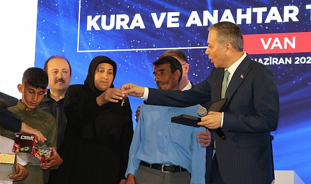 Van'da yapımı tamamlanan 337 afet konutunun kura çekimi ile 32 konutun hak sahiplerine anahtar teslim törenine katılmak üzere kente gelen İçişleri Bakanı Yerlikaya, Van Valisi ve Belediye Başkan Vekili Ozan Balcı tarafından karşılandı. Konutların anahtar teslim töreni, merkez Edremit ilçesinde bulunan uygulama otelinde düzenlendi. Törene Bakan Yerlikaya, Bakan Yardımcısı Münir Karaloğlu, Afet ve Acil Durum Yönetimi (AFAD) Başkanı Ali Hamza Pehlivan, Van Valisi ve Büyükşehir Belediyesi Başkan Vekili Ozan Balcı, Jandarma Asayiş Kolordu Komutanı Tümgeneral Ünsal Bulut, İl Emniyet Müdürü Murat Mutlu, AK Parti Van İl Başkanı Abdulahat Arvas, ilçe kaymakamları ve kura katılan hak sahipleri katıldı.