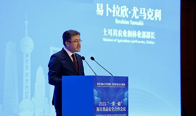 - TARIM ve Orman Bakanı İbrahim Yumaklı, Çin'in Şanghay kentinde Kuşak ve Yol İthalat-İhracat Gümrükler Gıda Güvenliği Konferansı'na katıldı.Tarım ve Orman Bakanı İbrahim Yumaklı, sosyal medya hesabından yaptığı açıklamada, "Kuşak ve Yol İthalat-İhracat Gümrükler Gıda Güvenliği Konferansı'nda, küresel dayanışmanın ancak ortak standartlar, adil ticaret ve sürdürülebilir tarım politikalarıyla güçleneceğini bir kez daha vurguladık. Türkiye; stratejik konumu, üretim kapasitesi ve adil paylaşım ilkesine dayalı vizyonuyla, gıda güvenilirliğinin küresel ölçekte sağlanması için kararlılıkla çalışıyor. Daha güvenli, daha sağlıklı ve daha adil bir gıda sistemini inşa etmek için ortak akıl ve iş birliğiyle üretmeye ve paylaşmaya devam edeceğiz" ifadelerini kullandı.