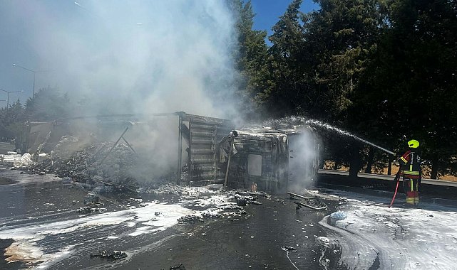 BALIKESİR'de devrilip, alev alan kağıt havlu ve su yüklü TIR'ın şoförü C.S., yaralandı.Kaza, saat 13.00 sıralarında Balıkesir çevreyolunun İzmir istikametinde meydana geldi. C.S. yönetimindeki 16 AAB 185 plakalı kağıt havlu ve su yüklü TIR, şoförünün direksiyon kontrolünü yitirmesi sonucu devrilip, alev aldı. Dorsedeki kağıt havlu ve sular çevreye saçıldı. Alevler yol kenarındaki otlara da sıçradı. İhbar üzerine bölgeye polis, sağlık ve itfaiye ekipleri sevk edildi. Yaralanan C.S., çevredekilerin yardımıyla TIR'dan çıkarıldı. C.S., ihbarla gelen sağlık ekiplerinin ilk müdahalesinin ardından hastaneye kaldırıldı. Balıkesir Büyükşehir Belediyesi İtfaiye ekipleri, yaklaşık 1 saatlik çalışmayla yangını kontrol altına aldı. Kaza nedeniyle çevreyolunun İzmir yönü geçici olarak trafiğe kapatıldı. Ekiplerin temizlik ve güvenlik çalışmalarını tamamlamasının ardından yol yeniden ulaşıma açıldı. Kazayla ilgili inceleme başlatıldı.