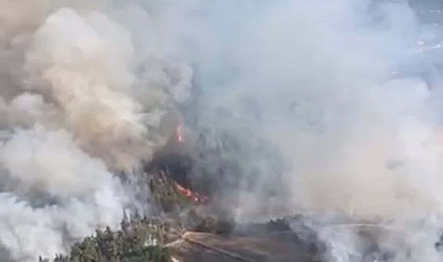 BALIKESİR'in Dursunbey ilçesindeki tarım arazisinde çıkan yangın, rüzgarın etkisiyle ormana da sıçradı. Alevlere havadan ve karadan müdahale başlatıldı.