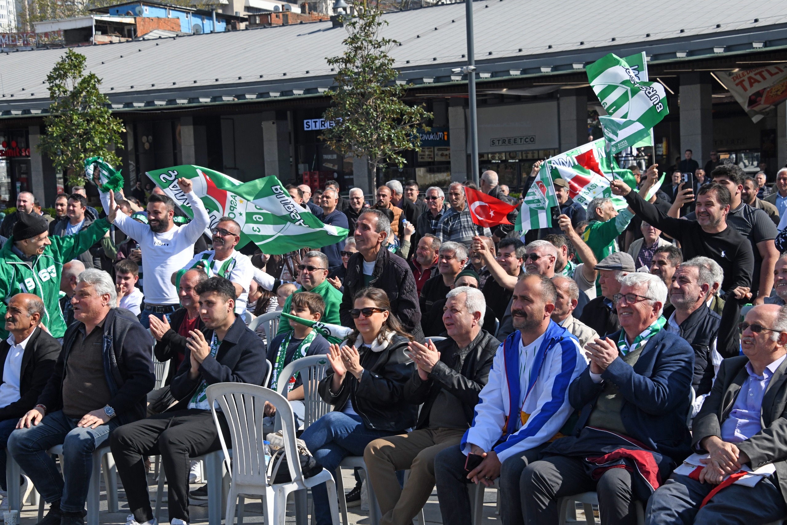 Bursaspor, sahasında Somaspor’u 5-1 mağlup ederek ligin bitimine bir hafta kala şampiyonluğunu ilan etti ve Trendyol 1. Lig’e yükseldi. Osmangazi Belediyesi’nin düzenlediği etkinliklerle çocuklar stadyumda, vatandaşlar da Osmangazi Meydanı’nda kurulan dev ekranda şampiyonluk coşkusunu birlikte yaşadı. Osmangazi Belediye Başkanı Erkan Aydın, Bursaspor’u gönülden tebrik ederek “Bursaspor’un hak ettiği yer olan Süper Lig’e bir yılı kaldı. Bursaspor, inşallah Süper Lig’de tekrar, hak ettiği yerde mücadeleye devam edecek.” diye konuştu.