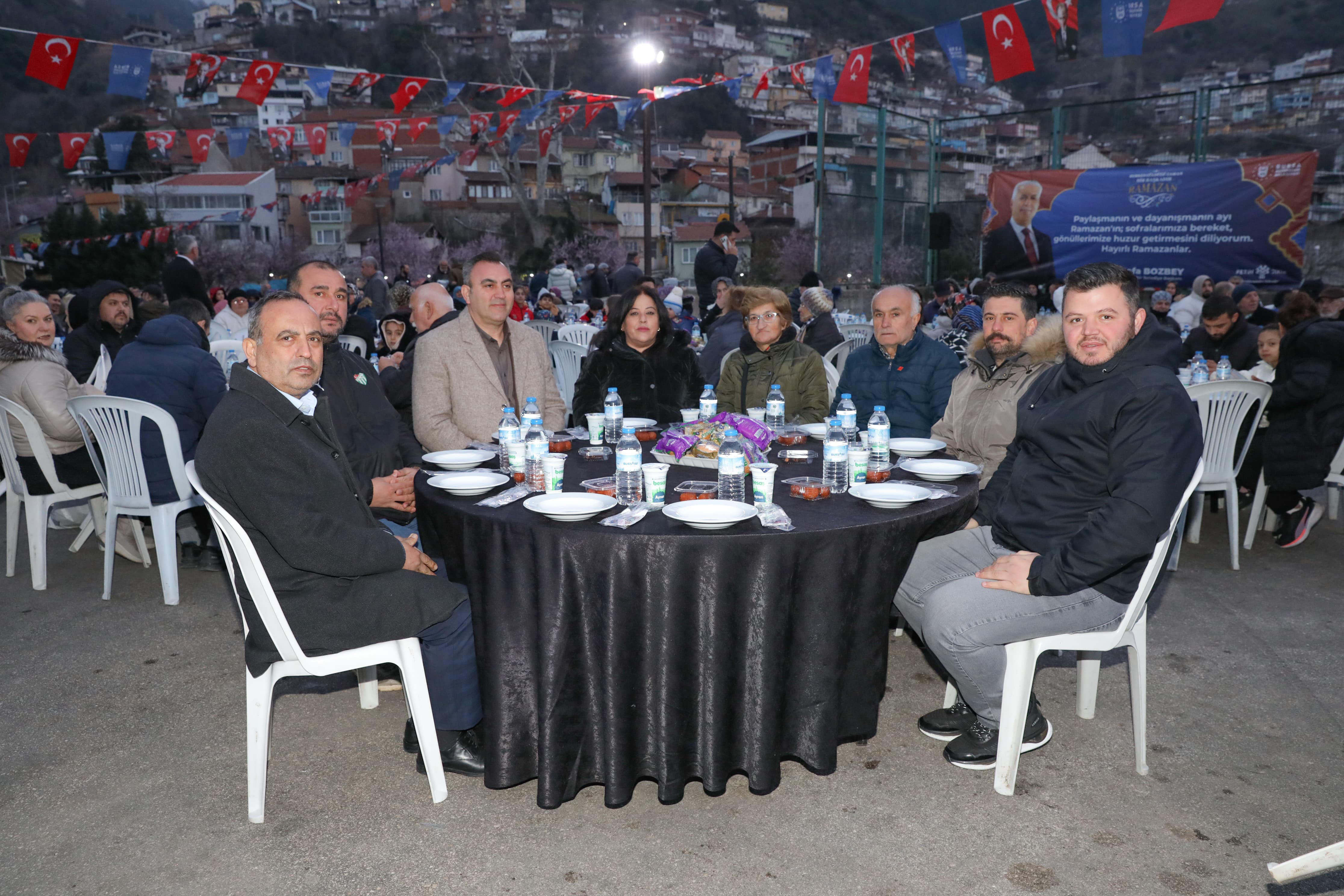 Emek Açık Pazar Alanı’ndaki programa katılan Bursa Büyükşehir Belediye Başkanı Mustafa Bozbey, mahalle sakinleri tarafından büyük bir coşkuyla karşılandı. Gencinden yaşlısına herkesle selamlaşarak sohbet eden Başkan Bozbey, vatandaşların talep ve önerilerini de dinledi. Gönüllerin bir olduğu programda, akşam ezanının okunmasıyla her birlikte oruçlar açıldı.