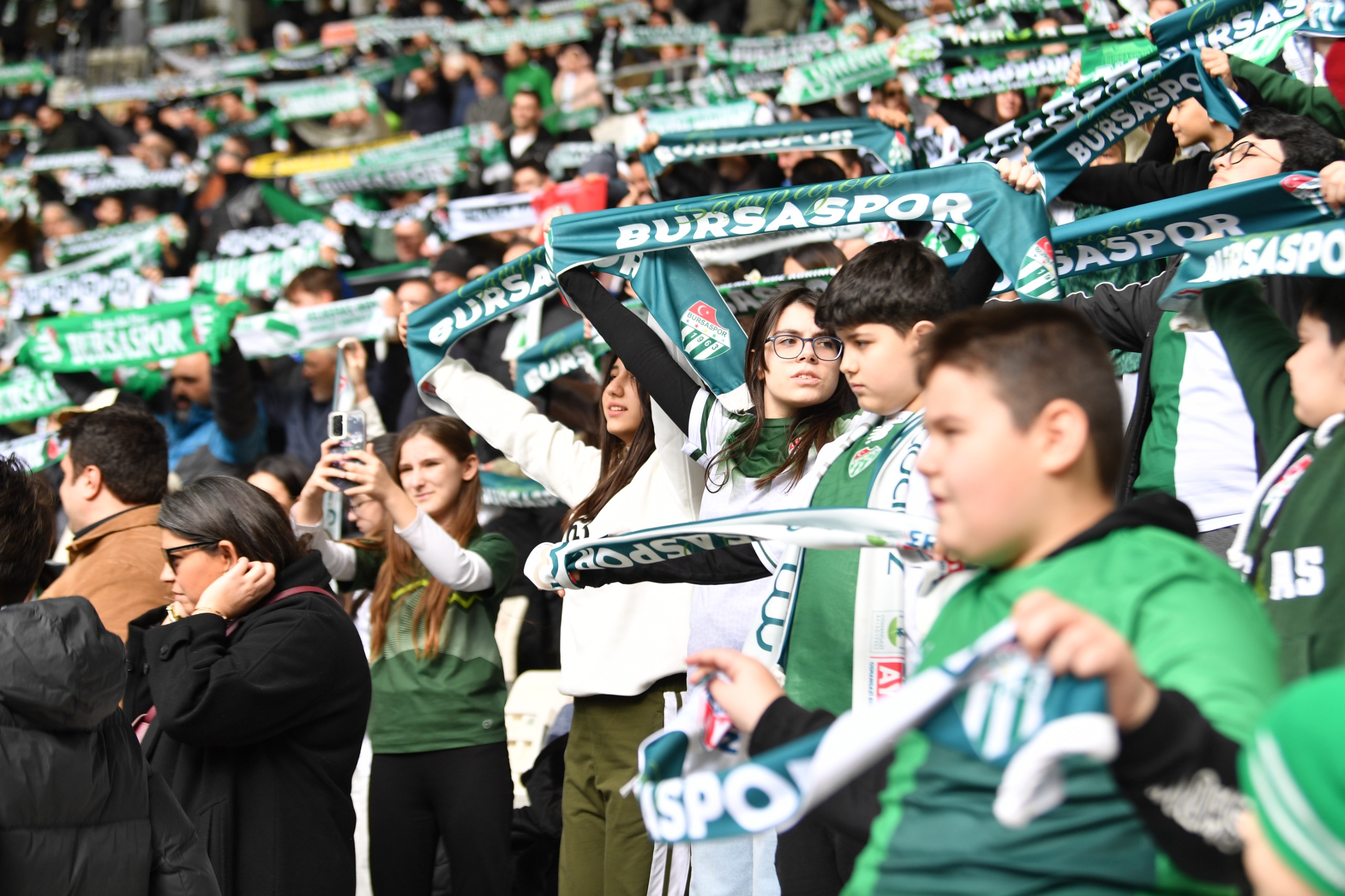 Osmangazi Belediyesi, Yenibağlar, Hamzabey ve Muradiye mahallelerinden 100 çocuğa, hayatlarında ilk kez Bursaspor atmosferini yaşattı. Osmangazi Belediye Başkanı Erkan Aydın da, çocuklarla birlikte müsabakayı takip ederek, 6-0’lık galibiyetin sevincini, Osmangazi’nin gelecek nesilleriyle paylaştı.Osmangazi Belediye Başkanı Erkan Aydın’ın öncülüğünde çocukların sporla iç içe büyümesi ve kentin en önemli değerlerinden biri olan Bursaspor ile güçlü bir bağ kurmaları amacıyla hayata geçirilen proje kapsamında çocuklar yeşil beyazlı sevda ile buluşmaya devam ediyor. Bu doğrultuda Yenibağlar, Hamzabey ve Muradiye mahallelerinden 100 çocuk, hayatlarında ilk kez Osmangazi Belediyesi tarafından Atatürk Spor Kompleksi Matlı Stadyumu’na götürüldü. Bursaspor’un Kuzeyboru 68 Aksaray Belediye Spor’u ağırladığı ve sahadan 6-0’lık galibiyetle ayrıldığı müsabakayı Ömer Matlı Çocuk Tribünü’nde büyük bir heyecan ile takip eden çocuklar, karşılaşma boyunca gelen gollerde doyasıya sevinirken, ellerindeki atkılarla da yeşil beyazlı takıma 90 dakika destek verdi. Karşılaşma öncesinde de Panorama 1326 Bursa Fetih Müzesi’ni gezen çocuklar, kentin tarihini yakından öğrenirken, eğitici ve eğlence dolu bir gün yaşadı.“Çocuklarımızı Bursasporlu Yapmak İçin Uğraşıyoruz”Çocukların hafızalarından silinmeyecek anlarına Osmangazi Belediye Başkanı Erkan Aydın da eşlik etti. Mücadeleyi çocuklarla birlikte takip eden Başkan Aydın, Bursaspor’un attığı gollerde sevincini Osmangazi’nin gelecek nesilleriyle paylaştı. Bursaspor’a olan sevdasını her alanda dile getiren Başkan Aydın, tezahüratlara da eşlik ederek yeşil beyazlı takıma destek oldu. Yoğun ilgiyle karşılanan Başkan Aydın, çocuklarla yakından ilgilenerek, fotoğraf isteklerini de geri çevirmedi. Çocuklara Bursaspor bilincini aşılamak istediklerine işaret eden Başkan Aydın, şöyle konuştu;“Yenibağlar, Muradiye ve Hamzabey mahallelerimizdeki çocuklarımızla birlikte Bursaspor maçını izlemeye geldik. Klasik programımızı yapıyoruz, çocukları alıyoruz Panorama 1326 Bursa Fetih Müzesi’ne götürüyoruz, daha sonra ikramlarımız ve ardından da bu müthiş atmosfere getirip, Bursaspor’un şampiyonluğu için çocuklarımızı Bursasporlu yapmak için uğraşıyoruz. Bursaspor’umuza başarılar diliyorum.”Maçtan önce de Panorama 1326 Bursa Fetih Müzesi’ni gezen ve akabinde Bursaspor’un heyecanına en yakından ortak olan çocuklar da, unutamayacakları bir gün yaşadıklarını belirterek, bu atmosfer ile birlikte Bursasporlu olduklarını ifade etti. Osmangazi Belediyesi’ne ve Osmangazi Belediye Başkanı Erkan Aydın’a teşekkür eden çocuklar, yeşil beyazlı takımın şampiyon olacağını sözlerine ekledi.