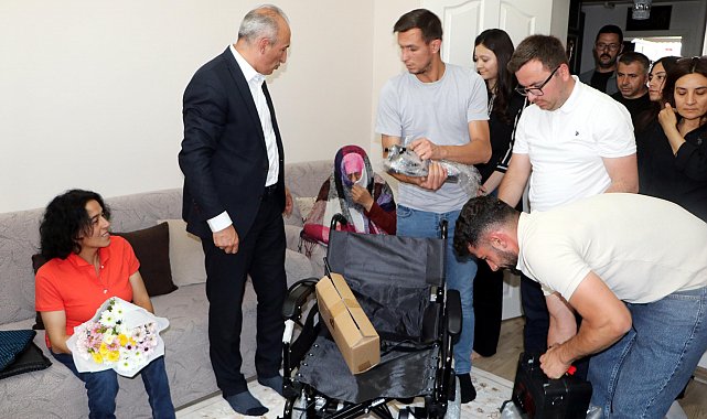 Başkan Sekmen'den komşularının darbettiği bedensel engelli kadına yeni tekerlekli sandalye