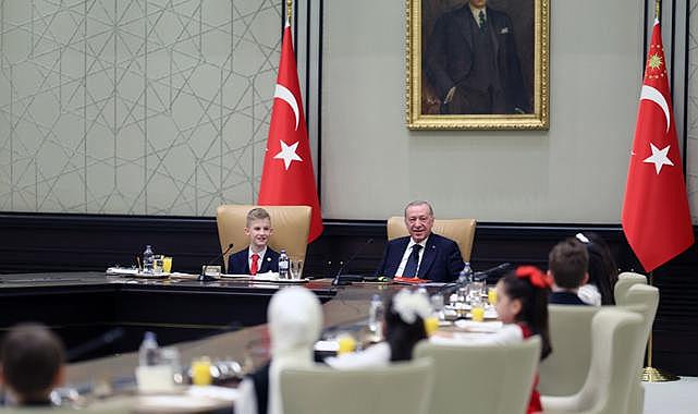 Cumhurbaşkanı Recep Tayyip Erdoğan, 23 Nisan Ulusal Egemenlik ve Çocuk Bayramı ile TBMM’nin 106. açılış yıl dönümü dolayısıyla Beştepe’de Milli Eğitim Bakanı Yusuf Tekin ve beraberindeki çocukları kabul etti.