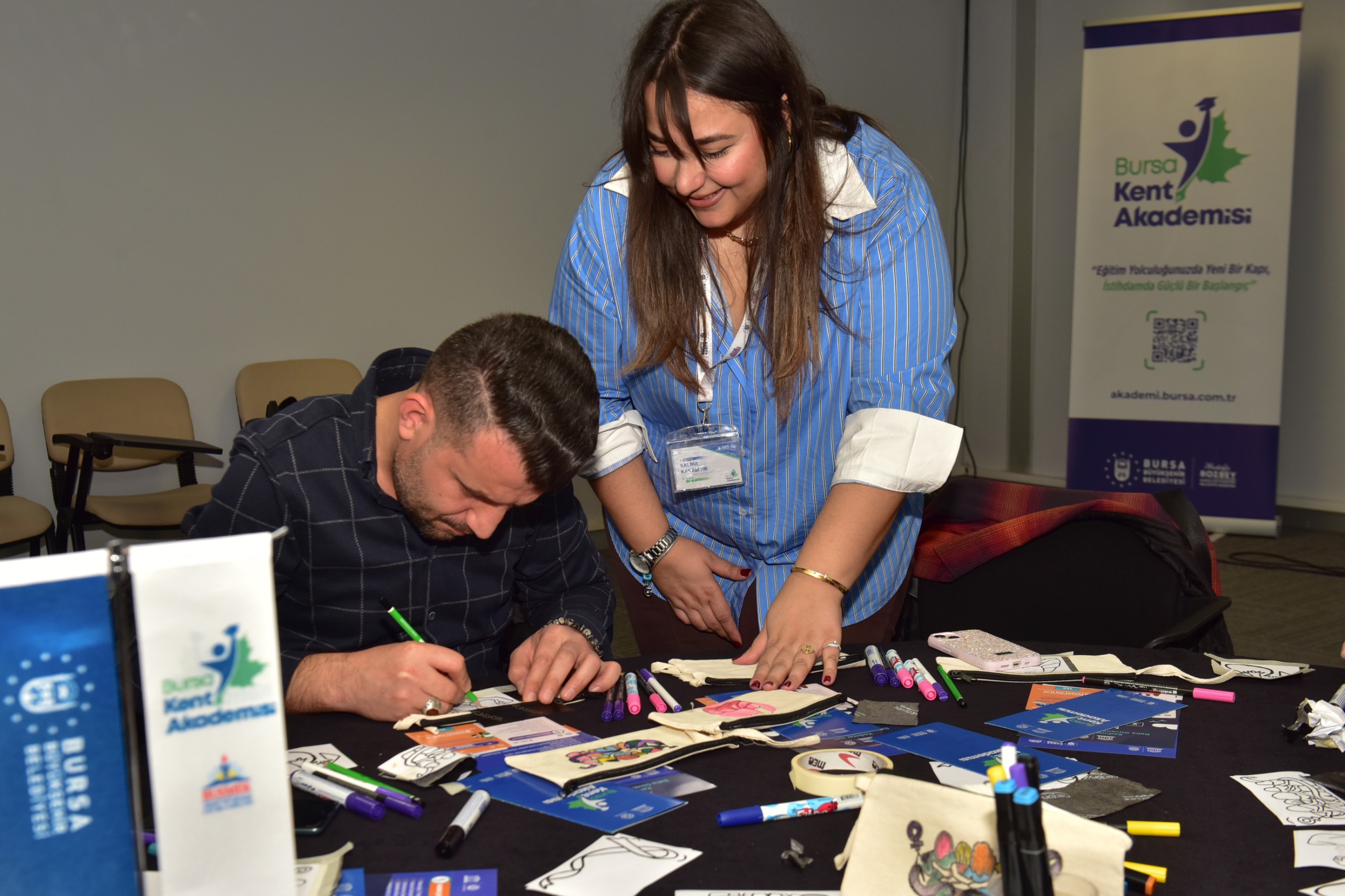Kadın ve erkek katılımlı ‘Psikolojik sağlamlık’ atölyesinde ise ruhsal dayanıklılığı artırmaya yönelik teknikler, stresle baş etme yolları ve günlük yaşamda uygulanabilir psikososyal yöntemler anlatıldı. Toplumsal cinsiyet algılarına dikkat çekmek amacıyla düzenlenen ‘Makyaj çantası tasarımı’ ve ‘Bileklik örme’ atölyelerine katılan erkekler de kendi tasarımlarını oluşturma ve el becerilerini geliştirme fırsatı buldu. Atölyeler, erkeklerin de bakım, estetik ve el becerisi gerektiren alanlarda aktif rol alabileceğini vurguladı. Merinos B Kafe önünde oluşturulan ‘Dayanışmanın İzinde–Farkındalık Standı’nda ise gün boyunca etkinlikler ve toplumsal cinsiyet eşitliği hakkında bilgilendirmeler yapıldı.