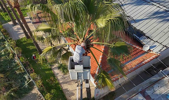 Belediye ekipleri, uygun hava şartlarının oluşmasıyla birlikte palmiye ağaçlarında budama çalışmalarına başladı.