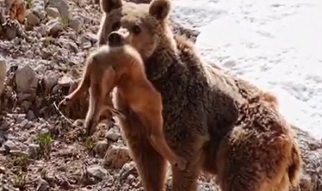 MUNZUR Dağları'nda bir bozayının dağ keçisi yavrusunu avladığı anlar, Bursalı fotoğraf sanatçısı Samet Asutay tarafından dronla görüntülendi. Anne dağ keçisinin, avlanan yavrusunu aradığı anlar da görüntülere yansıdı.Bursalı yaban hayatı fotoğrafçısı Samet Asutay, geçen hafta 2 arkadaşıyla birlikte Munzur Dağları'nda doğa gezisine çıktı. Asutay, bir bozayının yavrusuyla birlikte yamaçtan inen bir dağ keçisini kovaladığını gördü. Bozayı, annesinin arkasında kalan yavru dağ keçisini yakalayıp, bölgeden uzaklaştı. Anne dağ keçisi, karla kaplı yamaçta bir süre yavrusunu ararken, yaşananlar Asutay tarafından dronla görüntülendi.Samet Asutay, görüntüleri sosyal medya hesabından, 'Doğanın Gerçek Yüzü: Munzur Dağları'nda Nefes Kesen Anlar' başlığıyla paylaşarak şu ifadelere yer verdi:"Geçen hafta Munzur Dağları'na üç arkadaş yaptığımız gezi sırasında unutulmaz bir doğa olayına tanıklık ettik. Öğle saatlerinde dağ keçisi (şamua) yavrusuyla birlikte yamaçtan aşağı iniyordu. Tam o anda, uzaktan yaklaşan bir bozayıyı fark ettik. Telefonla kayda almaya başladık, ama bu anı daha net kayda almak için hemen dron ile havalandık. Ayı ve keçiye rahatsızlık vermemek adına uzak mesafeden, dronumuzun tele lensiyle 3x zoom yaparak çekim yaptık. Bu inanılmaz karşılaşma, doğanın acımasız ama hayranlık uyandıran dengesini bir kez daha gözler önüne serdi. Anne şamua ise sağa sola giderek yavrusunu aramaya devam etti."
