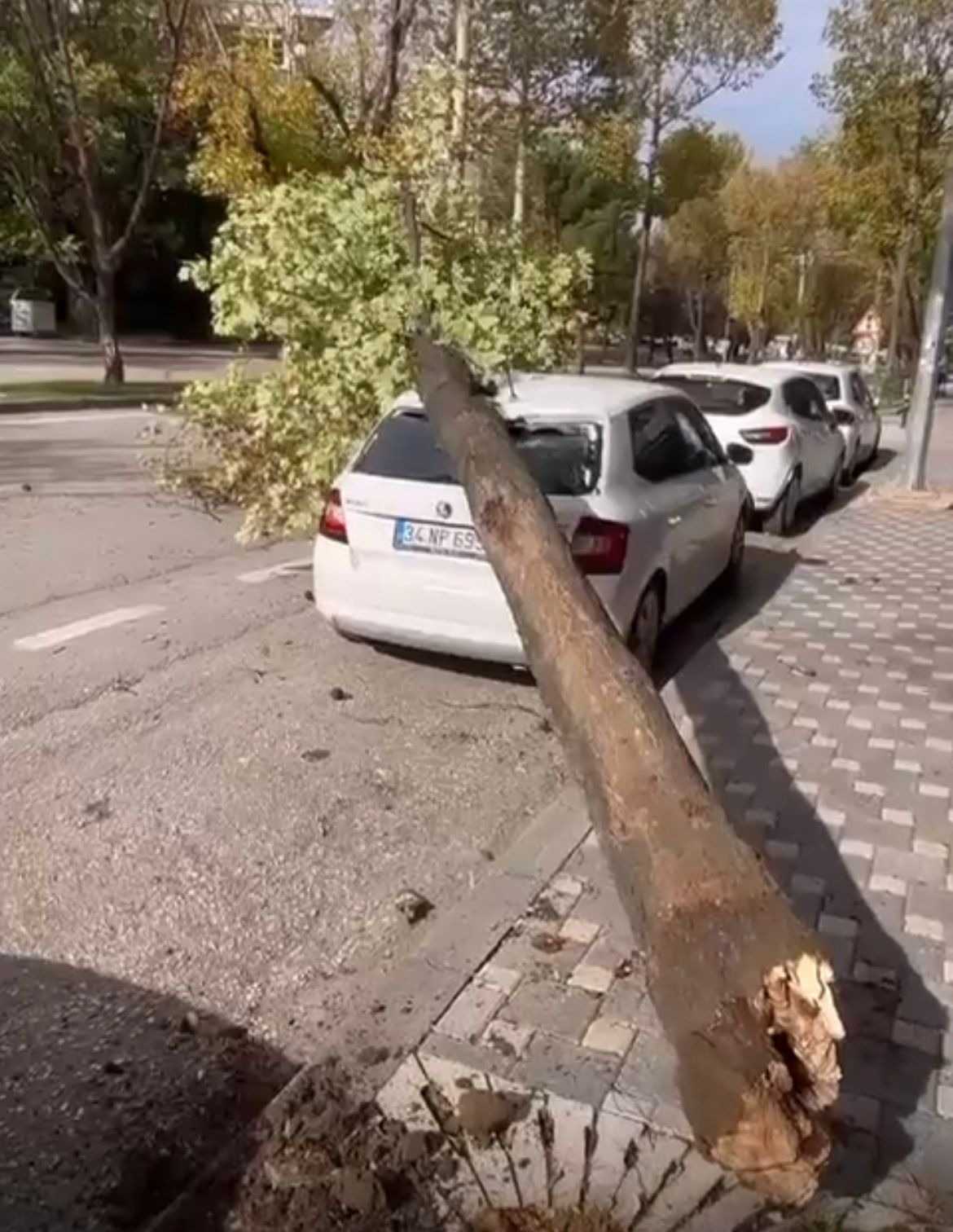 BURSA'da, saatteki hızı 45 kilometre hıza ulaşan lodos yaşamı olumsuz etkiledi. Çatıların uçtuğu, ağacın bir aracın üzerine devrildiği anlar güvenlik kameralarına yansıdı.Kentte sabah saatlerinde başlayan lodos hayatı olumsuz etkiliyor. Öğle saatlerinde hızını artırarak, saatteki hızı zaman zaman 45 kilometreye ulaşan lodos nedeniyle bazı ağaçlar devrildi. Osmangazi ilçesi Zübeyde Hanım Caddesi'nde üzerine ağaç devrilen park halindeki otomobil hasar gördü. Yıldırım ilçesi Yeşilyayla Mahallesi'nde bulunan 5 katlı apartmanın 3'üncü katındaki tadilatta kullanılan alçı tuğla, yol kenarında park halinde olan minibüsün üzerine düştü. Araçta hasar oluşurken, polis ekipleri, bölgede güvenlik önlemi aldı.SAATTEKİ HIZI 80 KİLOMETREYE ULAŞACAKMeteoroloji Genel Müdürlüğü'nden yapılan açıklamada da kentte kuvvetli rüzgarın etkisini gece yarısına kadar sürdüreceği belirtildi. Lodosun saatteki hızının 80 kilometreye ulaşabileceği belirtilen açıklamada, "Yapılan son değerlendirmelere göre; halen güney ve güneybatı (Lodos) yönlerden esmekte olan rüzgarın, bugün öğle saatlerinden itibaren Bursa il genelinde kuvvetli ve kısa süreli fırtına şeklinde (50-70 km/saat, yer yer hamlesi 80 km/saat) esmesi bekleniyor. Akşam saatlerinde etkisini kaybetmesi beklenen fırtınanın oluşturabileceği ulaşımda aksamalar, çatı uçması gibi olumsuzluklara karşı dikkatli ve tedbirli olunmalıdır" ifadelerine yer verildi.SAĞANAK UYARISIAkşam saatlerinde etkisini yitirmesi beklenen lodos, yerini kuvvetli sağanak ile gök gürültülü sağanak yağışa bırakacak. Vatandaşlar, kuvvetli yağışla birlikte sel, su baskını, yıldırım, ulaşımda aksamalar, yerel dolu yağışı, yağış anında kuvvetli rüzgar gibi olumsuzluklara karşı dikkatli ve tedbirli olmaları konusunda da uyarıldı.