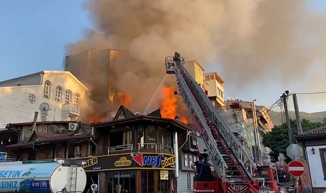 , BURSA'da, lokantada çıkan yangında alevler bitişikteki iş yerlerine de sıçradı. Ekiplerin alevlere müdahalesi devam ediyor.Yangın, akşam saatlerinde Osmangazi Mahallesi Atatürk caddesi üzerindeki bir lokantada çıktı. Dükkandan duman yükselmeye başladığını fark eden esnaf, durumu 112 Acil Çağrı Merkezine bildirdi. İhbarla bölgeye çok sayıda itfaiye ve polis ekibi sevk edildi. Alevler kısa sürede bitişikteki dükkanlara da sıçrayarak büyüdü. Ekipler, yangını kontrol altına alabilmek için çalışmasını sürdürüyor.