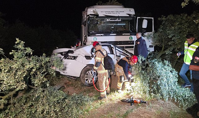 BURSA'nın Orhangazi ilçesinde, TIR ile çarpışan otomobilin sürücüsü Fuat Akdemir (44), hayatını kaybetti. Kaza, saat 00.30 sıralarında Orhangazi-İznik Kuzey Kara Yolu, Yeniköy mevkinde meydana geldi. Orhangazi istikametine giden Serdar Büyü'nün kullandığı 10 TR 584 plakalı TIR, karşı yönden gelen Fuat Akdemir yönetimindeki 34 MMY 674 plakalı otomobil ile çarpıştı. Altına aldığı otomobili metrelerce sürükleyen TIR, yoldan çıkıp zeytin bahçesindeki ağaçlara çarptı. İhbar üzerine kaza yerine çok sayıda jandarma, sağlık ve itfaiye ekibi sevk edildi. İtfaiye ekipleri, otomobilde sıkışan sürücü Fuat Akdemir'i bulunduğu yerden çıkardı. Sağlık ekiplerinin yaptığı kontrolde Akdemir'in hayatını kaybettiği belirlenirken TIR şoförü Serdar Büyü, hafif yaralı olarak Orhangazi Devlet Hastanesi'ne kaldırıldı. Akdemir'in cenazesi Bursa Adli Tıp morguna gönderilirken, kazayla ilgili soruşturma başlatıldı.