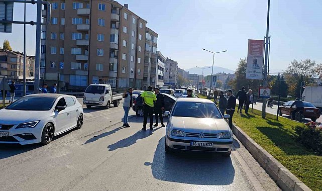 Bursa'nın İnegöl ilçesinde 3 otomobil ve 1 motosikletin karıştığı zincirleme kazada 2 kişi yaralandı.Kaza, Osmaniye Mahallesi Ahmet Akyollu Caddesi üzerinde meydana geldi. İnegöl'den Alanyurt istikametine seyir halinde olan Mehmet P. (27) yönetimindeki 34 FVM 558 otomobil, iddiaya göre ters yönden seyreden 16 BAF 038 plakalı motosiklete çarpmamak için ani fren yaptı. Bu sırada arkasından gelen Muharrem E. (20) yönetimindeki 16 AYA 633 plakalı otomobil, fren yapan otomobile arkadan çarptı. Muharrem E.'nin aracına da arkasında seyir halinde olan Özcan Ş.(30) yönetimindeki 35 DC 2232 plakalı otomobil çarptı. Kazada 34 FVM 558 plakalı otomobilde yolcu konumunda bulunan Murat Y. (53) ile Süleyman Y. (8) yaralandı. Yaralılar ambulanslarla İnegöl Devlet Hastanesi Acil Servisine götürülerek tedavi altına alındı.Kaza nedeniyle trafiğe kapanan yol, trafik ekipleri tarafından araçların yoldan kaldırılmasının ardından tekrar trafiğe açıldı.Polis kazayla ilgili soruşturma başlattı.