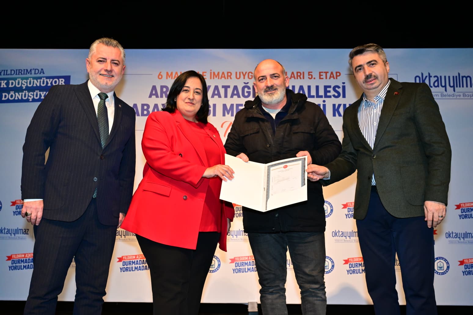 Yıldırım Belediyesi, 6 Mahalle İmar Uygulamaları kapsamında Arabayatağı, Çınarönü, Ulus, Yavuzselim, Mevlâna, Hacivat mahallelerinde 7 bin 417 tapu dağıtılırken, 18 bin 950 tapunun da işlemlerini tamamladı.