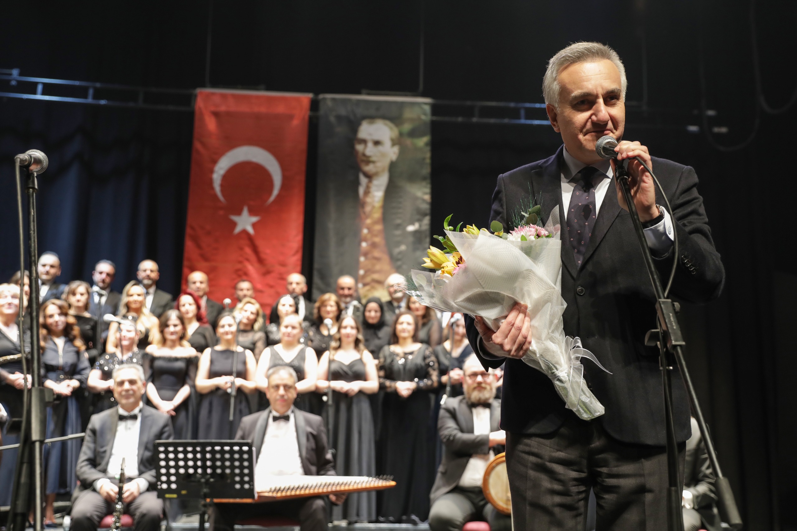Koroya katılıp eserlere eşlik eden Bursa Büyükşehir Belediyesi Başkanvekili Mustafa Orkun Gazioğlu, konser sonunda Şef Serkan Gençer’e çiçek takdim ederek hazırlanan dinleti için tüm koro üyeleri ve müzisyenlere teşekkür etti.