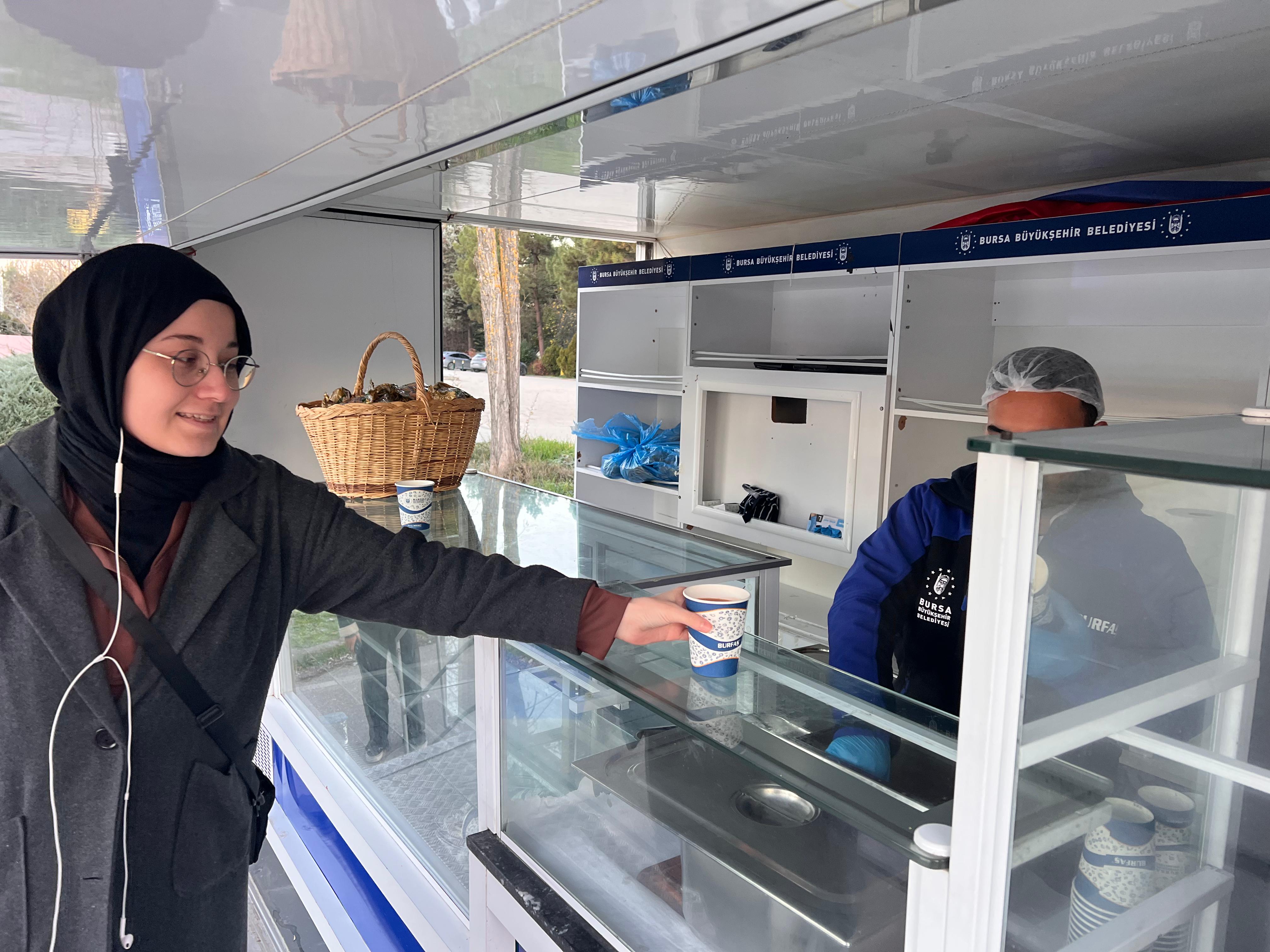 Soğuk kış günlerinde üniversite öğrencilerini yalnız bırakmayan Bursa Büyükşehir Belediyesi, Bursa Uludağ Üniversitesi ve Bursa Teknik Üniversitesi’nde eğitim gören öğrencilere her sabah ücretsiz sıcak çorba ve ekmek ikram ederek hem moral veriyor hem de destek oluyor.