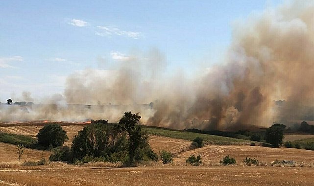 Nazif Cemhan ŞEN-Cihan BAYRALI/ ÇANAKKALE, (DHA) -ÇANAKKALE'nin Biga ilçesinde tarım arazisinde yangın çıktı