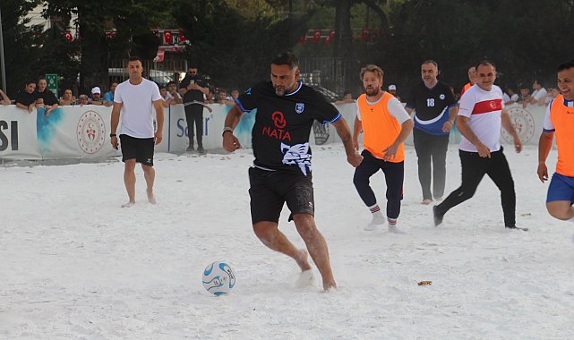 ÇANKIRI'da '4'üncü Uluslararası Çankırı Tuz Festivali' kapsamında düzenlenen futbol turnuvası, tuzdan yapılan sahada oynanan gösteri ve açılış maçıyla başladı. Maçın başlama vuruşunu A Milli Futbol Takımı eski oyuncusu Ümit Karan yaptı. Karan, maçta 2 gol attı.Çankırı Belediyesi tarafından 15-17 Ağustos tarihlerinde gerçekleştirilecek '4'üncü Uluslararası Çankırı Tuz Festivali' kapsamında 'Tuz Futbol Turnuvası' düzenlendi. Cumhuriyet Mahallesi Adnan Menderes Caddesi İsmet İnönü, Ortaokulu bahçesinde oluşturulan alanda zemin tuzla kaplanarak saha kuruldu. Futbolcular, çıplak ayak ile tuz üzerinde kıyasıya mücadele verdi. Gösteri maçına Vali M. Fırat Taşolar, Belediye Başkanı İsmail Hakkı Esen, Çankırı Karatekin Üniversitesi Rektörü Prof. Dr. Mevlüt Karataş, Baro Başkanı Av. Mustafa Deniz, eski milli futbolcu Ümit Karan ve sporcular katıldı. Maçın başlama vuruşunu Ümit Karan yaptı. Karan ve takımı, Çankırı Futbol Kulübü forması giydi. Tuz zemin üzerinde kıyasıya mücadele eden katılımcılar zaman zaman da zor anlar yaşadı. Maç öncesi konuşma yapan Çankırı Belediye Başkanı İsmail Hakkı Esen, "Şehrimizin önemli tescilli miraslarından kaya tuzumuzun üzerinde gerçekleştirdiğimiz ve ses getiren tuz müsabakalarımız sadece yarışma değil aynı zamanda dostluğun, fair-play ruhunun sahada parladığı spor şölenidir. Futbol, voleybol, sokak basketbolu ve tuzsurvivor olmak üzere 4 farklı kategoride 164 takım 932 sporcu, tuzdan sahalarda ve parkurda kıyasıya yarışacaklar. 4 yıldır tuzda spor ile farkımızı ortaya koyduk. Sadece tuzun değil, sporun da başkenti olduğumuzu gösterdik. Tüm çabamız Çankırı'yı hak ettiği noktalara taşıyabilmektir" dedi.'TUZ FUTBOL FESTİVALİ ÇOK KEYİFLİ'Maç sonu değerlendirmede bulunan eski futbolcu Ümit Karan da tuz zeminde oynamanın zor ama keyifli olduğunu söyleyerek "Öncelikle Çankırı Belediyesi'ne teşekkür ediyorum, güzel davet oldu. Daha öncede katıldım. Tuz futbol festivali hakikaten çok keyifli. Tuzda oynamak biraz farklı, biz çimlere alışığız. Güzel maç oldu. Güzel festival bekliyor gençlerimizi, her sene spora yöneltmeye çalışıyor belediye ve valilik. Önemli işler yapıyorlar. Gerçekten yürekten kutluyorum. Moral bozukluğundan sonra bunlar bize moral veriyor. Kötü günler yaşadık, yangınlar gibi. İnşallah böyle biraz daha moral buluruz. Tuzda oynamak zor, imkansız gibi bir şey, topu ayarlayamıyorsun ama keyifli. Geçen sene de gelmiştim, oynamıştım" diye konuştu.Vatandaşlar ve çocuklar maç sonrasında Ümit Karan'a yoğun ilgi ve sevgi gösterisinde bulunurken, hatıra fotoğrafları çektirdi ve formalarını imzalattı.