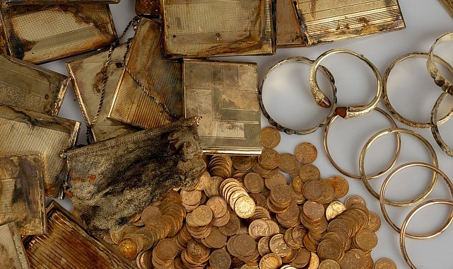 - ÇEKYA'da yürüyüş yapan iki kişi, kayalıklar arasına bir kutuda altın bilezik, madeni para ve eski eşya buldu.Çekya'nın doğusundaki Krkonose Dağları'nda yürüyüş yapan iki kişi kayalık bir yamaçta alüminyum kutu buldu. Kutudan altın bilezikler, puro kutuları, makyaj aynaları ve yüzlerce eski madeni para çıktı. Yürüyüşçüler, kutuyu Doğu Bohemya Müzesi'ne teslim etti. Uzmanların, eşyaların hem tarihini hem de kim tarafından ve neden saklanmış olabileceğini araştırdığı bildirildi.Müze Arkeoloji Bölümü Başkanı Miroslav Novak, kutudan çıkan paraların Çekya'ya ait olmadığını söyledi. Bu da definenin yerel değil, uluslararası bir geçmişi olabileceği ihtimalini doğuruyor. En yeni paranın 1921 tarihli olması, araştırmacıları şaşırttı. Koleksiyonun 2'nci Dünya Savaşı öncesinde bölgeden kaçan Yahudi ya da Çek vatandaşlara ait olabileceği değerlendiriliyor. Bir diğer ihtimal ise 1945'teki Alman göçü sırasında gizlenmiş olması.