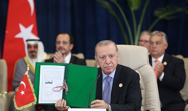 - CUMHURBAŞKANI Recep Tayyip Erdoğan, Mısır'ın Şarm El-Şeyh şehrinde düzenlenen ve Gazze'de varılan ateşkes mutabakatına ilişkin olarak toplanan 'Barış için Şarm El-Şeyh Zirvesi'ne katıldı.Cumhurbaşkanı Recep Tayyip Erdoğan ve ABD Başkanı Donald Trump'ın da aralarında bulunduğu 20 dünya liderinin katılımıyla Gazze'deki ateşkes anlaşmasına son şeklini vermek üzere Mısır'da 'Barış Zirvesi' düzenlendi. Zirvede, Cumhurbaşkanı Erdoğan, ABD Başkanı Trump, Mısır Cumhurbaşkanı Sisi ve Katar Emiri Al-Sani Gazze için niyet beyanını imzaladı.ABD Başkanı Trump, zirvenin açılışında yaptığı konuşmada, 'Gazze için kapsamlı bir belge imzalayacağız. Erdoğan'a teşekkür ediyorum. Erdoğan, çok uzun zamandan beri çok iyi bir dostum. En güçlü ordulardan biri Erdoğan'da' dedi.