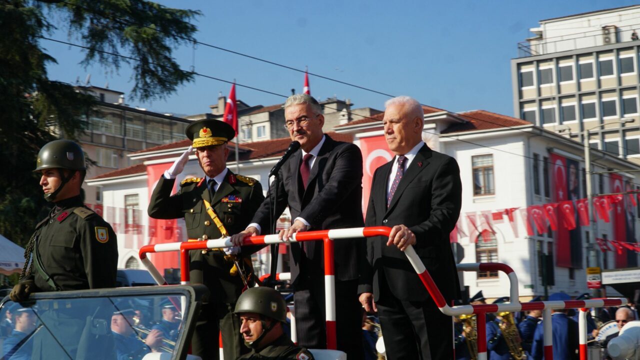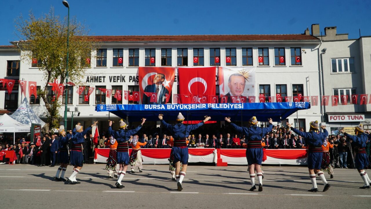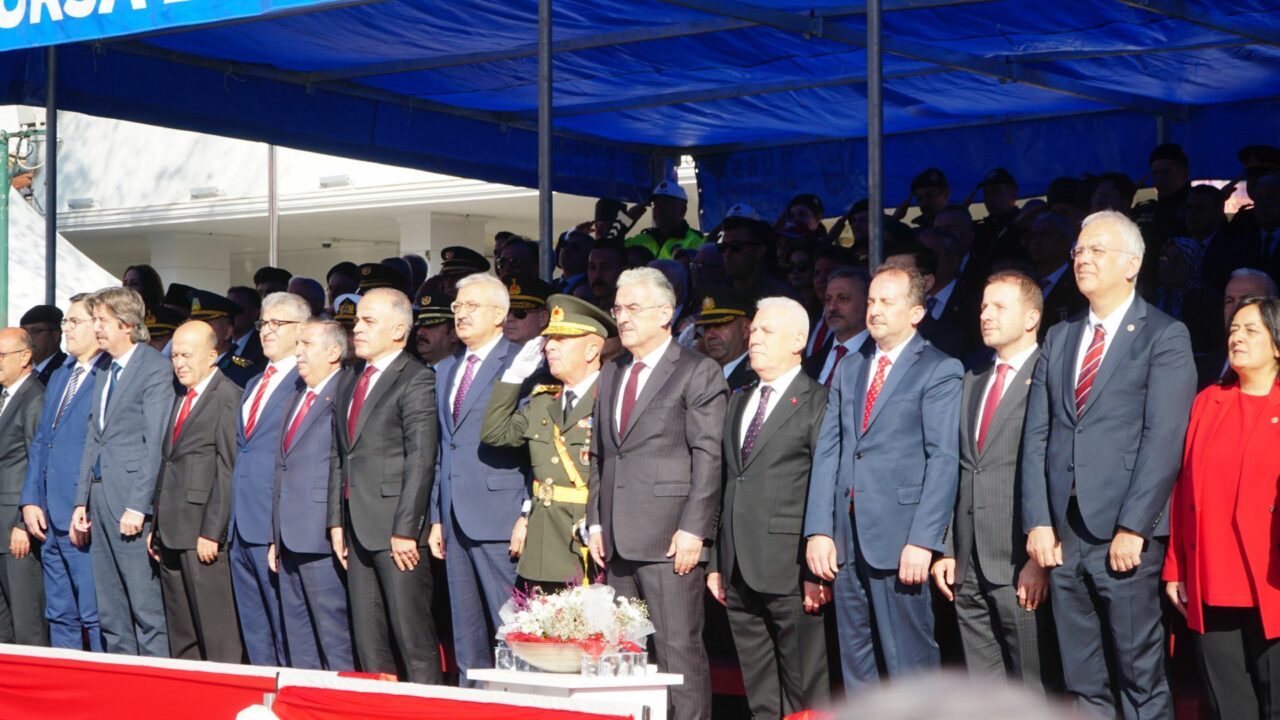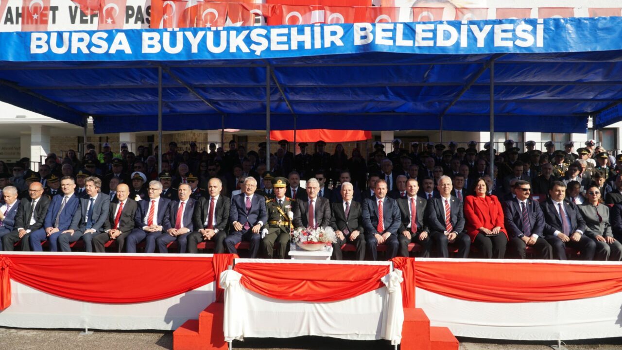 Tören, Bursa Valisi Erol Ayyıldız’ın protokol üyeleriyle birlikte tebrikleri kabul etmesiyle başladı. Ardından Vali Ayyıldız, Bursa Büyükşehir Belediye Başkanı Mustafa Bozbey ve Bursa İl Garnizon Komutanı Tümgeneral Yusuf Diker halkı selamladı. Alanı dolduran vatandaşlar, kortej geçişi sırasında uzun süre alkış tuttu.