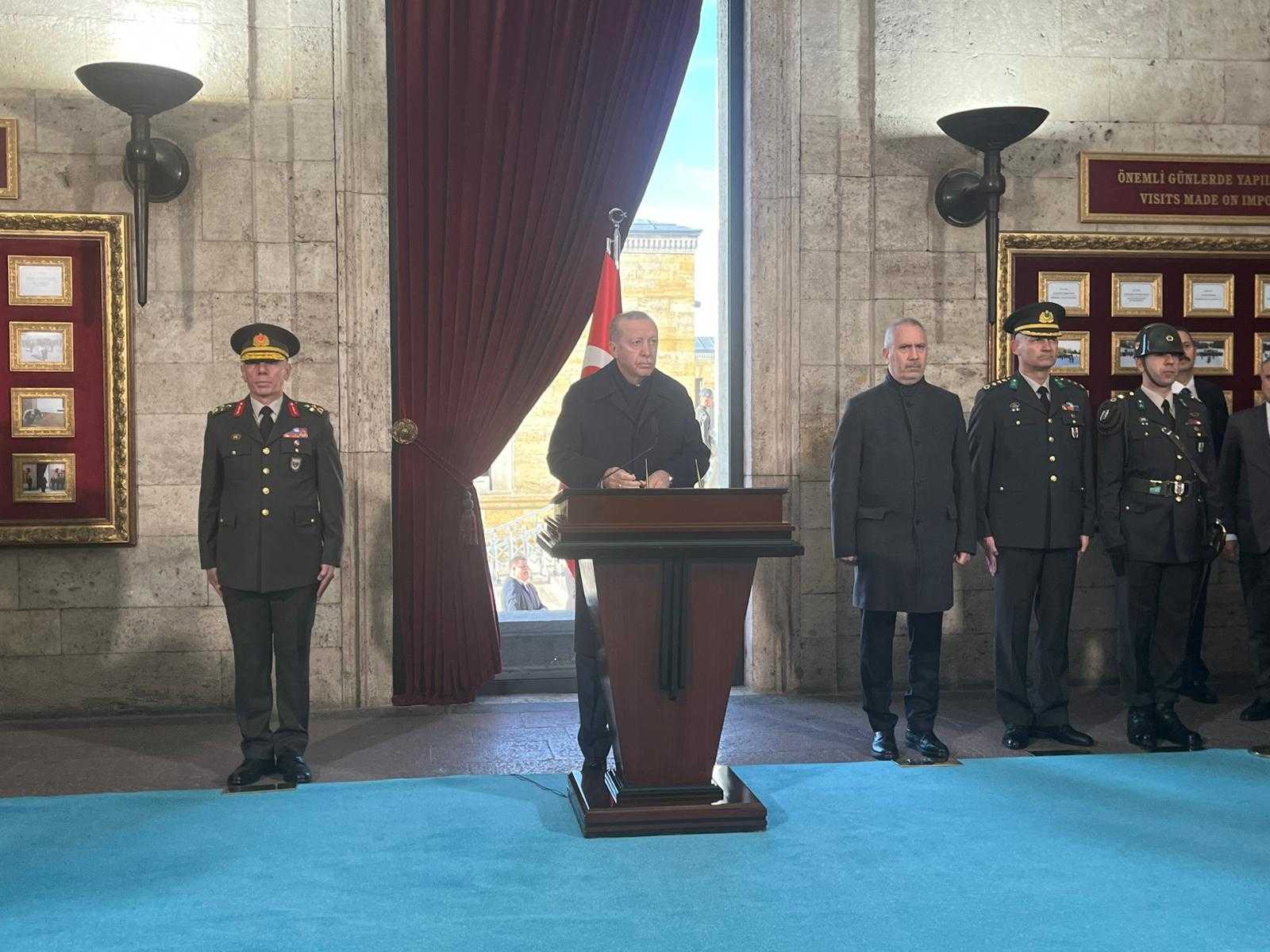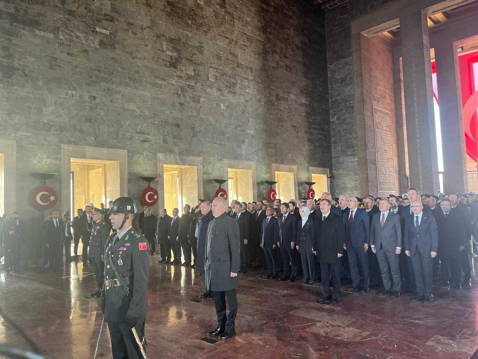 TÜRKİYE Cumhuriyeti'nin kurucusu Gazi Mustafa Kemal Atatürk, ebediyete irtihalinin 87'nci yıl dönümünde, Cumhurbaşkanı Recep Tayyip Erdoğan başkanlığındaki devlet erkanının katıldığı resmi törenle Anıtkabir'de anıldı.Gazi Mustafa Kemal Atatürk'ün 87'nci vefat yıl dönümü nedeniyle Anıtkabir'de anma töreni düzenlendi. Törene; Cumhurbaşkanı Recep Tayyip Erdoğan'ın yanı sıra Türkiye Büyük Millet Meclisi Başkanı Numan Kurtulmuş, Cumhurbaşkanı Yardımcısı Cevdet Yılmaz, CHP Genel Başkanı Özgür Özel, MHP Genel Başkanı Devlet Bahçeli, İYİ Parti Genel Başkanı Müsavat Dervişoğlu, bakanlar, kuvvet komutanları, yüksek yargı üyeleri, askeri personel ve öğrenciler katıldı. Cumhurbaşkanı Erdoğan ve beraberindekiler, Aslanlı Yol'dan yürüyerek, Atatürk'ün mozolesine geldi. Cumhurbaşkanı Erdoğan, üzerinde ay yıldız bulunan çelengi Atatürk'ün mozolesine bıraktıktan sonra saygı duruşunda bulunuldu, İstiklal Marşı okundu. Saat 09.05'te çalan sirenle birlikte Anıtkabir'de hayat durdu.ERDOĞAN: CUMHURİYET'E TUTKUYLA SAHİP ÇIKIYORUZCumhurbaşkanı Erdoğan ve beraberindekiler, daha sonra Misak-ı Milli Kulesi'ne geçti. Cumhurbaşkanı Erdoğan, Anıtkabir Özel Defteri'ni imzalayarak, şunları yazdı:"Aziz Atatürk; vefatınızın 87'nci yıl dönümünde zat-ı alinizi, İstiklal Harbimizi birlikte yürüttüğünüz silah arkadaşlarınızı ve yüzlerce yıldır vatan topraklarını kanlarıyla sulayan kahraman şehitlerimizi rahmetle yad ediyoruz. 'En büyük eserim' dediğiniz Türkiye Cumhuriyeti'ne tutkuyla sahip çıkıyor, ülkemizin her karışını yeni eserlerle nakış nakış işlemeye devam ediyoruz. İçeride huzurlu ve istikrarlı, dışarıda muteber ve muzaffer bir Türkiye için gece gündüz demeden çalışıyoruz. Emin ve ehil kadroların öncülüğünde Türkiye, küresel bir güç olma yolunda emin adımlarla ilerlemektedir. Ruhun şad olsun."