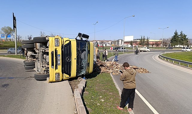 BURSA'nın İnegöl ilçesinde, devrilen ahşap palet yüklü kamyonun sürücüsü Cengiz K. (44), yaralandı.Kaza, saat 15.30 sıralarında, Bursa-Ankara kara yolunda, İnegöl girişindeki köprülü kavşakta meydana geldi. 35 CZZ 70 plakalı ahşap palet yüklü kamyon, Bursa'dan İnegöl istikametine dönüş sırasında, sürücüsü Cengiz K.'nin kontrolünden çıkıp devrildi. Sürücü yaralandı, kamyonun dorsesindeki paletler yola dağıldı. İhbarla bölgeye polis ve sağlık ekipleri sevk edildi. Yaralı sürücü, ambulansla İnegöl Devlet Hastanesi'ne kaldırıldı. Polis kazayla ilgili inceleme başlattı.
