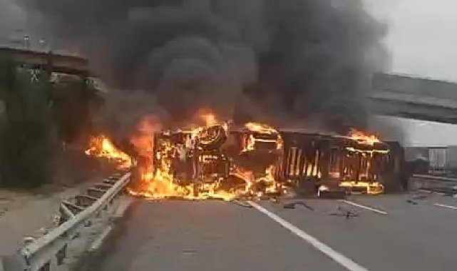 MERSİN'in Tarsus ilçesinde refüjdeki bariyerlere çarpıp, devrilen TIR, alev alev yandı. Sürücünün yara almadan kurtulduğu kazada karayolu yaklaşık 1 saat ulaşıma kapandı.Kaza, akşam saatlerinde Tarsus-Pozantı Otoyolu Damlama mevkisinde meydana geldi. Y.A. yönetimindeki 38 AGV 644 plakalı elyaf yüklü TIR, refüjdeki bariyerlere çarpıp, devrildikten sonra alev aldı. Sürücünün yara almadan kurtulduğu kazada TIR, yanmaya başladı. Çevredekilerin ihbarı üzerine olay yerine itfaiye ekipleri sevk edildi. Kaza ve yangın nedeniyle otoyol, trafiğe kapatıldı. İtfaiye ekiplerinin müdahalesiyle yangın, yaklaşık yarım saatte söndürüldü. Yangında kullanılmayacak hale gelen TIR'ın yoldan kaldırılmasının ardından otoyol yeniden trafiğe açıldı.Kazayla ilgili soruşturma başlatıldı.