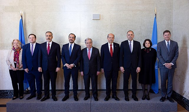 - DIŞİŞLERİ Bakanı Hakan Fidan, Cenevre'de Kıbrıs konulu genişletilmiş formatlı gayriresmi toplantısına katıldı.Dışişleri Bakanı Hakan Fidan, İsviçre'deki Birleşmiş Milletler (BM) Cenevre Ofisi'nde gerçekleştirilen Kıbrıs konulu genişletilmiş formatlı gayriresmi toplantısına katıldı. Toplantıya, Bakan Fidan'ın yanı sıra BM Genel Sekreteri Antonio Guterres, KKTC Cumhurbaşkanı Ersin Tatar, GKRY Lideri Nikos Hristodulidis, Yunanistan Dışişleri Bakanı Yorgo Gerapetritis ve Birleşik Krallık Dışişleri Bakanlığı'nda Avrupa ve Kuzey Amerika'dan Sorumlu Devlet Bakanı Stephen Doughty de katılıyor. Katılımcılar, toplantı öncesi 'Aile Fotoğrafı' çektirdi.GÖRÜNTÜ DÖKÜMÜ----------------------------- Kıbrıs konulu genişletilmiş formatlı gayriresmi toplantı öncesi görüntüler ve katılımcıların aile fotoğrafı çekimi.