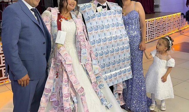 BURDUR'daki düğünde takı merasiminde damada paradan yapılmış yelek giydirildi.Kentte oturan Ali Sonkaya-Gülsüm Zerey çiftinin geçen hafta gerçekleştirilen düğünündeki takı merasimi dikkat çekti. Düğüne katılan damadın dayısı Hilmi Sipahi, damada, paralardan oluşturduğu yeleği taktı. Burdur Belediyesi Konferans ve Sergi Salonu'ndaki düğünde, para yeleği gören damat ve gelin, duruma şaşırdıklarını söyledi. Davetliler ise 100 liralık banknotlardan oluşan yelek takıyı takan Sipahi'yi uzun süre alkışladı.