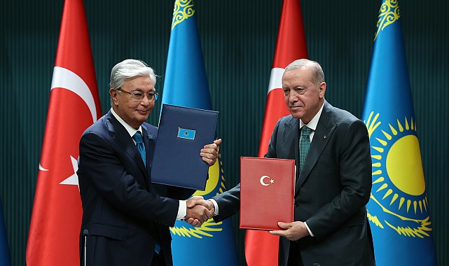 CUMHURBAŞKANI Recep Tayyip Erdoğan, "Terör devleti İsrail, 22 aydır Filistin halkını canice katlediyor. 360 kilometrekareye hapsettiği Gazzeli kardeşlerimize soykırım uyguluyor. Gazze'den Nazi kamplarından çok daha kötü, daha vahşi ve insanlık dışı fotoğraflar geliyor. Gazze'deki insani durum felaket boyutundadır" dedi.Cumhurbaşkanı Recep Tayyip Erdoğan ile Kazakistan Cumhurbaşkanı Kasım Cömert Tokayev, Cumhurbaşkanlığı Külliyesi'nde 'Türkiye- Kazakistan Yüksek Düzeyli Stratejik İşbirliği Konseyi Beşinci Toplantısı'nın ardından anlaşmaların imza törenini gerçekleştirdi. Törenin ardından ortak basın toplantısı düzenlendi. Erdoğan, Cumhurbaşkanı Tokayev ile heyetini ağırlamaktan memnuniyet duyduğunu ifade ederek, "2009 yılında stratejik ortaklığımızı ilan ettiğimiz Kazakistan'la münasebetlerimizi 3 yıl önce geliştirilmiş stratejik ortaklık düzeyine yükseltmiştik. Kazakistan bölgenin en büyük ekonomisi, bizim de bölgedeki en büyük ticari ortağımız. Ticaret hacminde 15 milyar dolar seviyesini hedef alarak yolumuza devam ediyoruz. Yatırımlarımız 5 milyar dolar seviyesine ulaştı. Kazakistan'ın ülkemizdeki yatırımları ise 1 buçuk milyar dolara yaklaştı. Müteahhitlik firmalarımız bugüne kadar 30 milyar dolar değerinde 500'ün üzerinde projeyi başarıyla üstlendi" dedi.Erdoğan, bugün gerçekleştirilen toplantıda savunmadan enerjiye, ulaştırmadan bilim ve teknolojiye çok geniş bir yelpazede görüş alışverişinde bulunulduğunu belirterek, 20 belgeyi imzaladıklarını söyledi. Erdoğan, "Madencilik ve nadir toprak elementleri gibi bu sektörlerde iş birliği imkanlarını değerlendirdik. Daha fazla miktarlarda Kazak petrolünün ülkemiz üzerinde dünya pazarlarına ulaştırılmasının yollarını ele aldık. İpek Yolu'nun günümüzdeki karşılığı olan, Hazar geçişli Orta Koridorun kullanımı ve geliştirilmesi hususunda yapabileceklerimizi istişare ettik. Askeri ve savunma sanayi iş birliğimizi daha ileriye taşıyacak somut projeleri görüştük. Güvenlik iş birliği ve FETÖ başta olmak üzere, terör örgütleriyle mücadele konuları da gündem başlıklarımız arasında yer aldı" diye konuştu.'TÜRK VATANDAŞLARINA VİZE MUAFİYETİ 90 GÜNE ÇIKTI'Türkiye'yi ziyaret eden Kazak turist sayısının her geçen yıl arttığını kaydeden Erdoğan, "Geçtiğimiz sene 900 bine yakın Kazak kardeşimizi ülkemizde ağırladık. Ülkemizden de Kazakistan'a yönelik bir teveccüh olduğunu görüyoruz. Kazakistan, Türk vatandaşlarına vize muafiyet süresini 90 güne çıkardı. Bu karardan dolayı değerli kardeşim Tokayev'e teşekkür ediyorum. Eğitim ve kültür konuları her zaman olduğu gibi yine gündemimizdeydi. İlk kapsamlı ortak projemiz olan Hoca Ahmet Yesevi Uluslararası Türk- Kazak Üniversitesi, 30 yılı aşkın süredir, 100 binden fazla mezun verdi. Şimdi de Sayın Tokayev'in desteğiyle, Türkiye Maarif Vakfı'nın Astana ve Almatı'da birer okul açma çalışmalarına başladığının müjdesini buradan vermek isterim. Ayrıca Gazi Üniversitesi de Güney Kazakistan Pedagoji Üniversitesi'nde bir şube açacak. Bu sene Kazakistan'ın milli şairi Kazak halkının büyük dahisi, mütefekkir, Abay Kunanbayev'in 180'inci doğum yıl dönümü. İsmini Kazak kardeşlerimizle birlikte tüm Türk dünyasının kalbine derin saygıyla yazdıran o büyük şairi bu vesileyle rahmetle yad ediyorum" ifadelerini kullandı.'TÜRK DÜNYASININ GÜÇLENMESİ İÇİN BİRLİKTE ÇALIŞIYORUZ'Erdoğan, "Doğu Akdeniz'den Türkistan'ın en ücra köşelerine uzanan coğrafyamızda 'dilde, fikirde, işte birlik' şiarıyla hareket ediyoruz. Gerek ikili ilişkiler gerek aile meclisimiz olan Türk Devletleri Teşkilatı bünyesinde, Türk dünyasının güçlenmesi için birlikte çalışıyoruz. Kazakistan'ın teşkilatımızın 2026'daki gayri resmi zirvesine Türkistan'da ev sahipliği yapacak olmasından memnuniyet duydum. Türk dünyasının asli ve ayrılmaz bir unsuru olan Kıbrıs Türkleriyle de dayanışmamızı güçlendirmeye devam ediyoruz. Biraz önce Sayın Tokayev'le kabul ettiğimiz ortak bildiride, Kıbrıs Türklerinin eşit ve özden gelen haklarına saygı duyulmasını özellikle istişare ettik" dedi.'İSRAİL, FİLİSTİN HALKINI CANİCE KATLEDİYOR'Kazakistan Cumhurbaşkanı Tokayev ile bölgesel ve uluslararası meseleleri de değerlendirdiklerini kaydeden Erdoğan, "Gazze başta olmak üzere Rusya- Ukrayna Savaşı ve Afganistan gibi başlıklarda görüş alışverişinde bulunduk. Terör devleti İsrail, 22 aydır Filistin halkını canice katlediyor. 360 kilometrekareye hapsettiği Gazzeli kardeşlerimize soykırım uyguluyor. Gazze'den Nazi kamplarından çok daha kötü, daha vahşi ve insanlık dışı fotoğraflar geliyor. Tüm dünyanın gözleri önünde, bir halk açlık ve susuzlukla öldürülüyor. Gazze'deki insani durum felaket boyutundadır. Masum çocuklar ya açılıktan ya da İsrail işgal güçlerinin silahlarından çıkan kurşunlardan dolayı can vermektedir. İsrail'in açlığı, özellikle Filistinlilere karşı bir silah olarak kullanması bunların insanlıktan nasibini almadıklarının en açık göstergesiz. Bu barbarlık karşısında İslam ülkeleri başta olmak üzere, herkesin vicdan sahibi tüm ülkelerin, tüm halkların sesini daha fazla yükseltmesi şarttır. Biz bu konuda ne yapılması gerekiyorsa yapmaya devam edeceğiz. Gazze halkına soykırım uygulayanların hukuk ve tarih önünde hesap verdiği günleri de inşallah göreceğiz" diye konuştu.'ORTAK HEDEFE ULAŞMAK İÇİN GÜÇLERİMİZİ BİRLEŞTİRMENİN ÖNEMİ BÜYÜK'Kazakistan Cumhurbaşkanı Tokayev, "Halklarımızın iş birliğinin güçlenmesi, başarıların çoğalması, ortak hedefe ulaşmak için güçlerimizi birleştirmenin önemi büyüktür. Daha yeni tamamlanan neticeli görüşmelerin iki halkı
