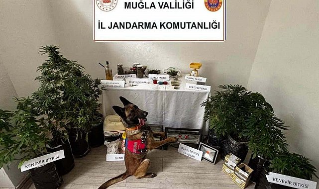 MUĞLA'nın Marmaris ilçesinde bir evde narkotik köpeği 'Arya' ile yapılan aramada çeşitli tür ve miktarlarda uyuşturucu ele geçirildi. Gözaltına alınan Hakan Atakır, tutuklandı. Muğla İl Jandarma Komutanlığı ekipleri, Marmaris'in Tepe Mahallesi'nde yaşayan Hakan Atakır'ın piyasaya uyuşturucu süreceği bilgisine ulaştı. Cumhuriyet Başsavcılığı koordinesinde şüphelinin evinde dün narkotik köpeği 'Arya' ile yapılan aramada 2 kilo 764 gram skunk, 815 gram kubar esrar, 12 kök Hint keneviri, 2 hassas terazi, 2 öğütme aparatı, 6 uyuşturucu madde kullanma aparatı, 15 parçadan oluşan iklimlendirme ve ışık sistemi ele geçirildi. Gözaltına alınan ve jandarmadaki işlemlerinin ardından adliyeye sevk edilen Hakan Atakır tutuklandı.