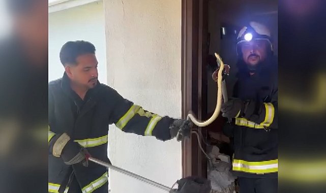 YALOVA'da bir eve giren yılan, itfaiye görevlileri tarafından yakalanarak doğaya salındı. Merkeze bağlı Kazımiye Köyü'nde müstakil evde oturan vatandaşlar, bir yılanın bahçe kısmına açılan kapılarından içeri girdiğini fark etti. Ev sahiplerinin 112 Acil Çağrı Merkezi'nden yardım istemesi üzerine, adrese itfaiye görevlileri sevk edildi. Evin içindeki yılanı özel aparat ile yakalayan itfaiye görevlileri, daha sonra doğaya saldı.