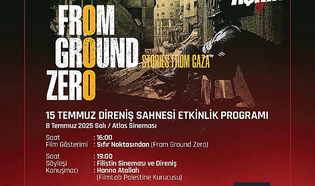 KÜLTÜR ve Turizm Bakanlığı, '15 Temmuz Direniş Sahnesi' etkinlikleri kapsamında İstanbul Beyoğlu'ndaki Atlas Sineması'nda Filistin halkının yaşadığı acıları sinema perdesine taşıyan özel gösterim ve söyleşi programı gerçekleştirileceğini açıkladı. Bakanlıktan yapılan yazılı açıklamada, "Kültür ve Turizm Bakanlığı Sinema Genel Müdürlüğü'nün desteğiyle, 15 Temmuz Derneği tarafından düzenlenen '15 Temmuz Direniş Sahnesi' etkinlikleri kapsamında Filistin halkının yaşadığı büyük acıları sinema perdesine taşıyan özel bir gösterim ve söyleşi programı gerçekleştirilecek. 8 Temmuz Salı günü İstanbul Beyoğlu'ndaki Atlas Sineması'nda düzenlenecek etkinlikte, Gazze'de yaşananlara sinema aracılığıyla tanıklık eden 'Sıfır Noktasından' (From Ground Zero) adlı film saat 16.00'da izleyiciyle buluşacak. 22 genç Filistinli yönetmenin katkısıyla hazırlanan film, devam eden çatışmaların merkezinden yükselen kişisel hikayeleri beyaz perdeye taşıyor. Film, daha önce birçok uluslararası festivalde gösterilmiş ve dikkat çekici tepkiler almıştı" denildi.'ÜCRETSİZ VE HALKA AÇIK OLACAK'Film gösteriminin ardından saat 19.00'da Filistin sinemasının önemli temsilcilerinden Hanna Atallah'ın, izleyicilerle söyleşi gerçekleştireceği belirtilerek, "Filmlab Palestine'in kurucusu ve Palestine Cinema Days Film Festivali'nin direktörü olan Atallah, söyleşide Filistin'deki sinema üretim süreçlerini, tanıklığın sinemasal dilini ve sanatın direnişle ilişkisini ele alacak. Program, ücretsiz ve halka açık olacak" ifadelerine yer verildi.