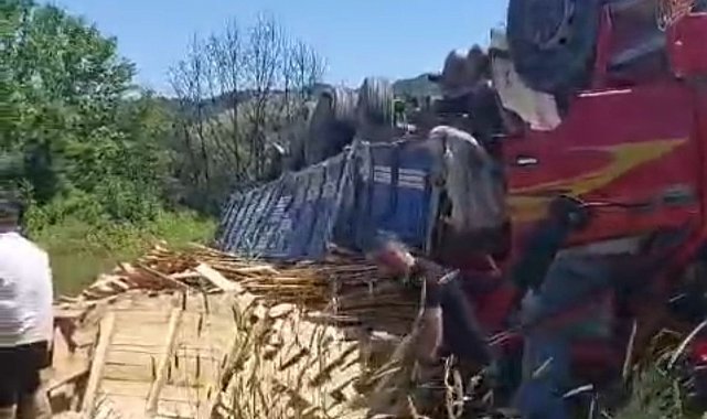 YALOVA'da, seyir halindeyken freni boşalan kereste yüklü kamyon, kontrolden çıkarak devrildi. Kazada sürücü yaralandı.Kaza, saat 15.00 sıralarında Yalova- Bursa karayolu üzerinde meydana geldi. Yalova istikametine seyir halinde olan Ali İhsan Erkul (59) idaresindeki kereste yüklü kamyon, rampa inerken frenleri boşaldı. Sürücünün kontrolünden çıkan kamyon, yol kenarında bulunan arsaya devrildi. Kazada yaralanan sürücü, olay yerine gelen sağlık ekipleri tarafından ambulansla Yalova Eğitim ve Araştırma Hastanesi'ne kaldırıldı. Kazayla ilgili soruşturma başlatıldı.